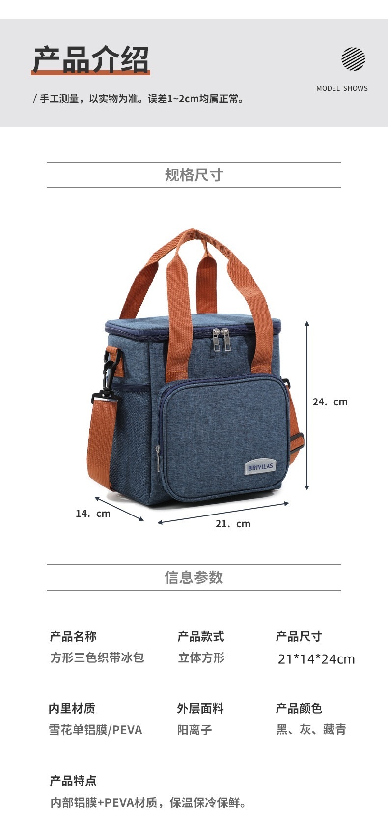 • 휴대용 보온가방 [네이비블루] 12.5L 더블 레이어 하이트닝 크로스바디