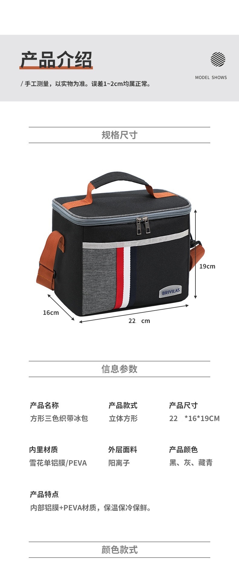 • 휴대용 보온가방 [회색] 12.5L 더블 레이어 강화 대각선 스팬