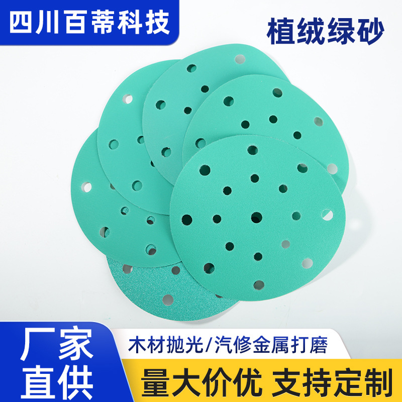 국경을 넘는 녹색 모래 5 인치 6 홀 폴리 에스테르 필름 녹지 사포 자동차 드라이 샌딩 페이퍼 연마 마모 방지스토어 가기