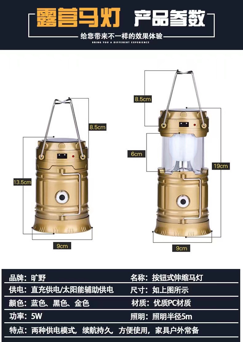 야외 새로운 말 랜턴 5800 캠핑 라이트 태양 충전 LED 캠핑 텐트 라이트 다기능 스트레치 라이트스토어 가기
