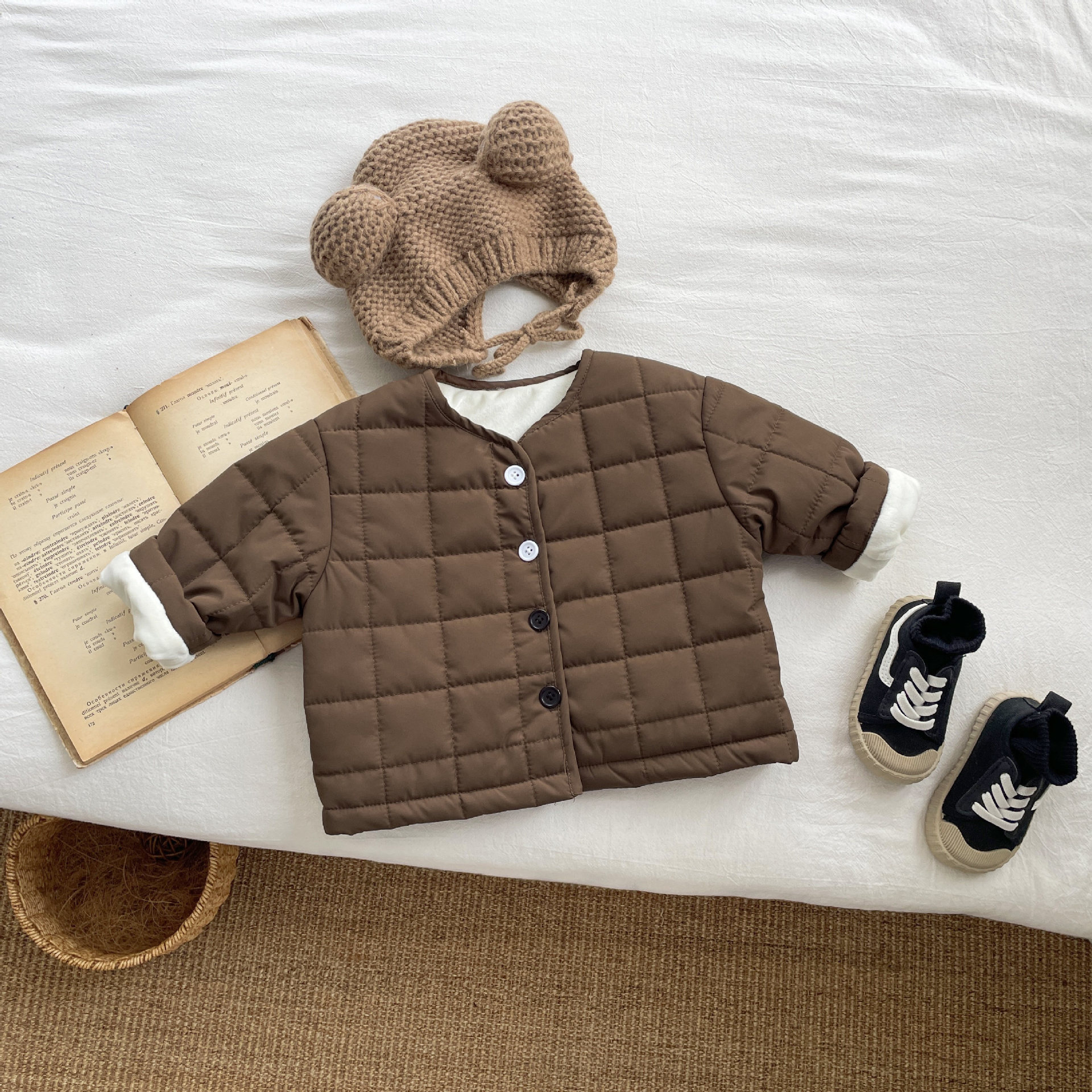 한국 스타일 아기 겨울 퀼트 재킷 소년 소녀를위한 겨울 옷 기모 두꺼운 코튼 옷 서양식 아기 따뜻한 옷 트렌디