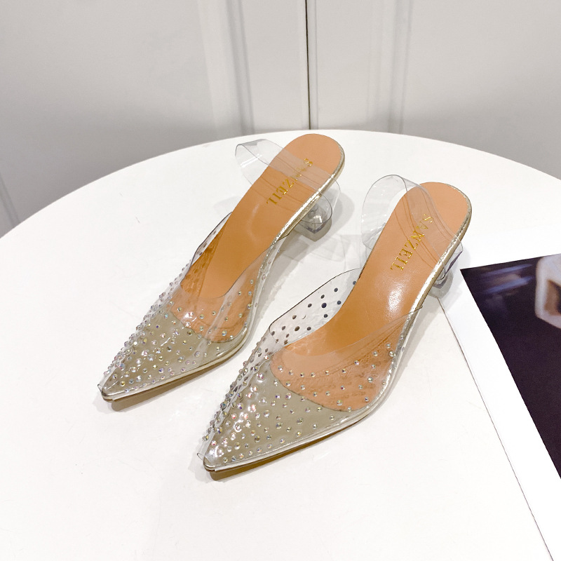 유럽과 미국의 대외 무역 플러스 사이즈 투명한 하이힐 샌들 여성용 여름 의상 신발 라인스톤 생선 입 요정 스타일 크리스탈 신발스토어 가기