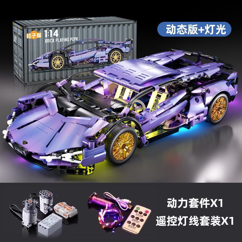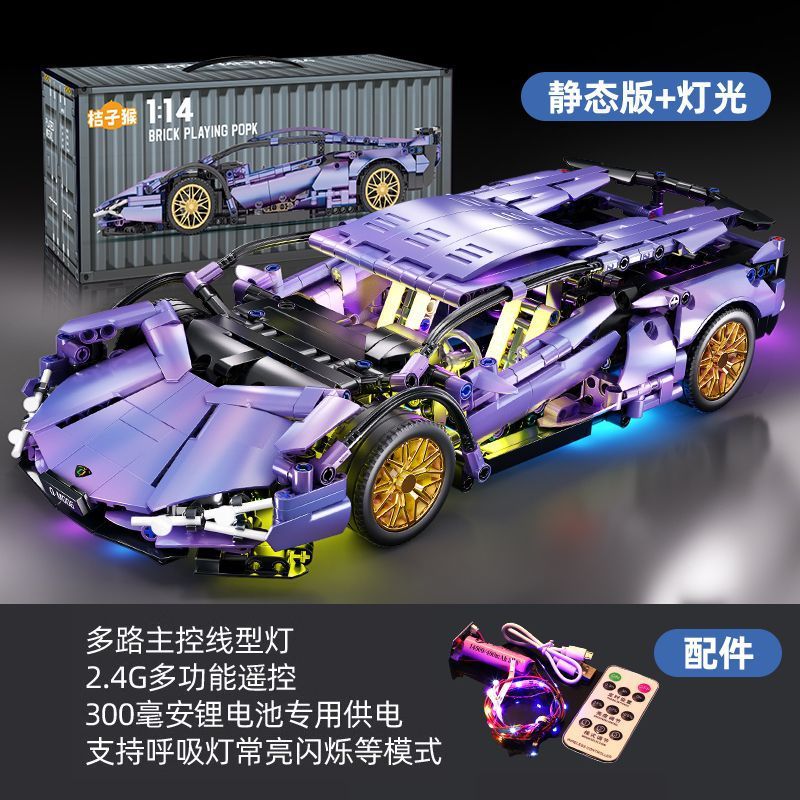 • 도금 퍼플 람보 슈퍼카 (무선 조종 조명 + 동력 장치)