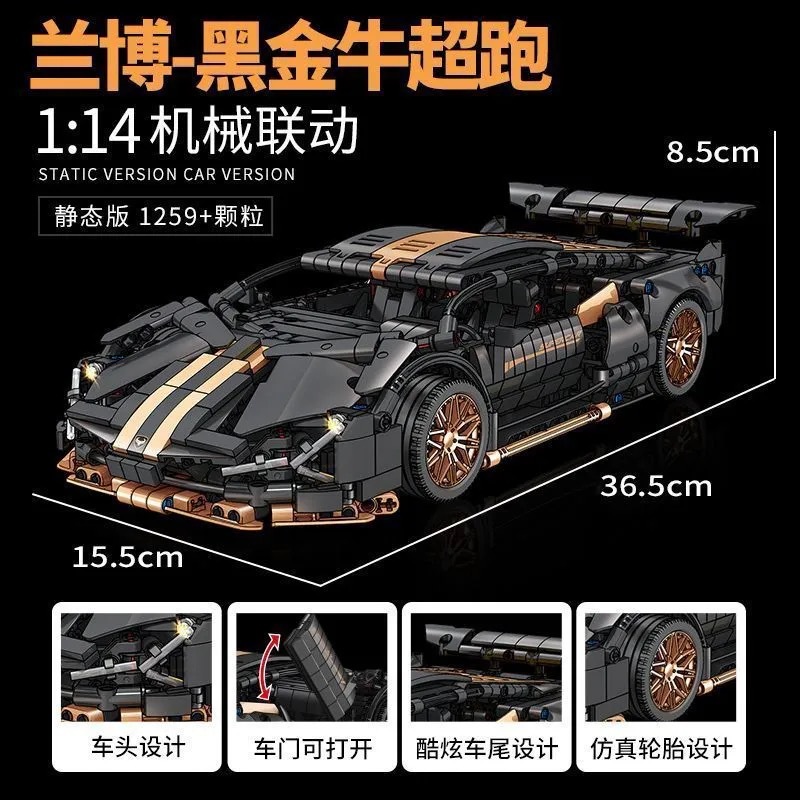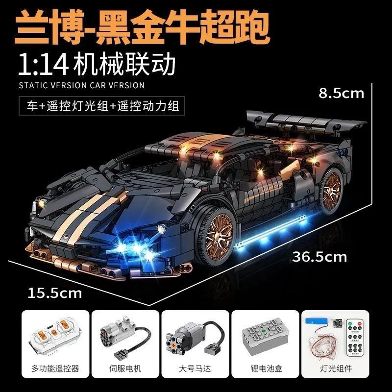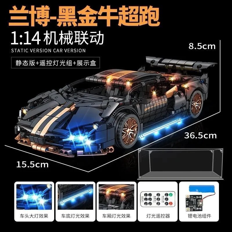 • 전기 도금 그라데이션 람보 슈퍼카 - 1280+ 입자 [정적 버전 + 원격 제어 조명]