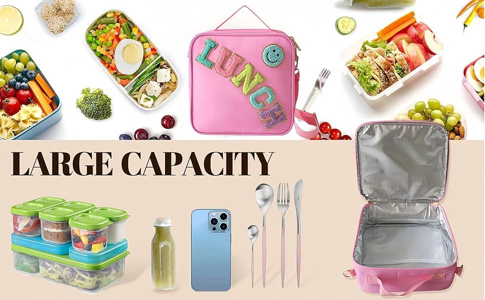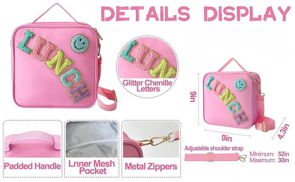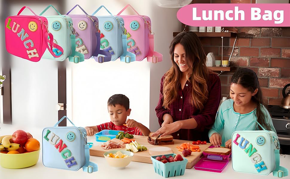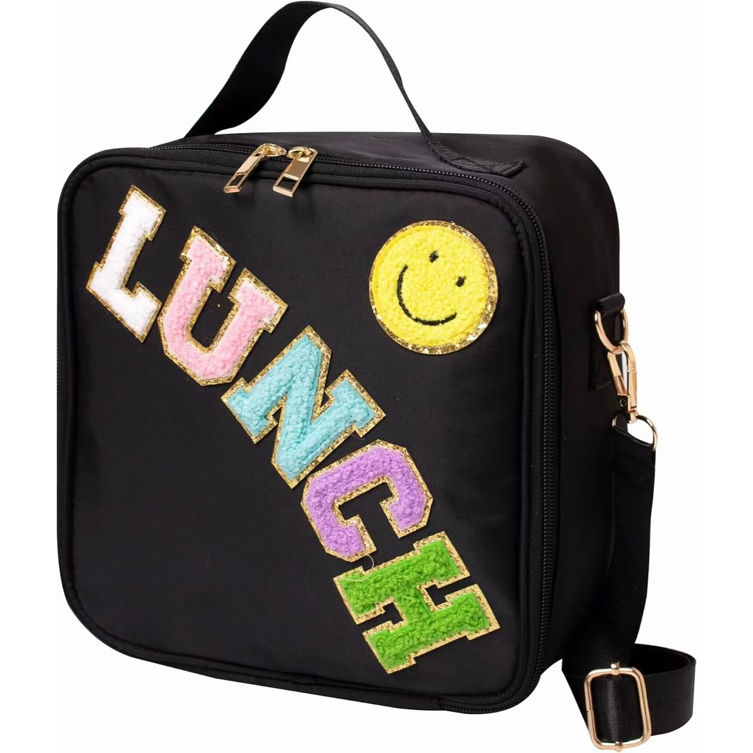 국경 간 폭발 신선한 점심 가방 자수 편지 스마일리 야외 휴대용 단열 알루미늄 점심 가방