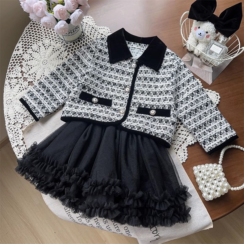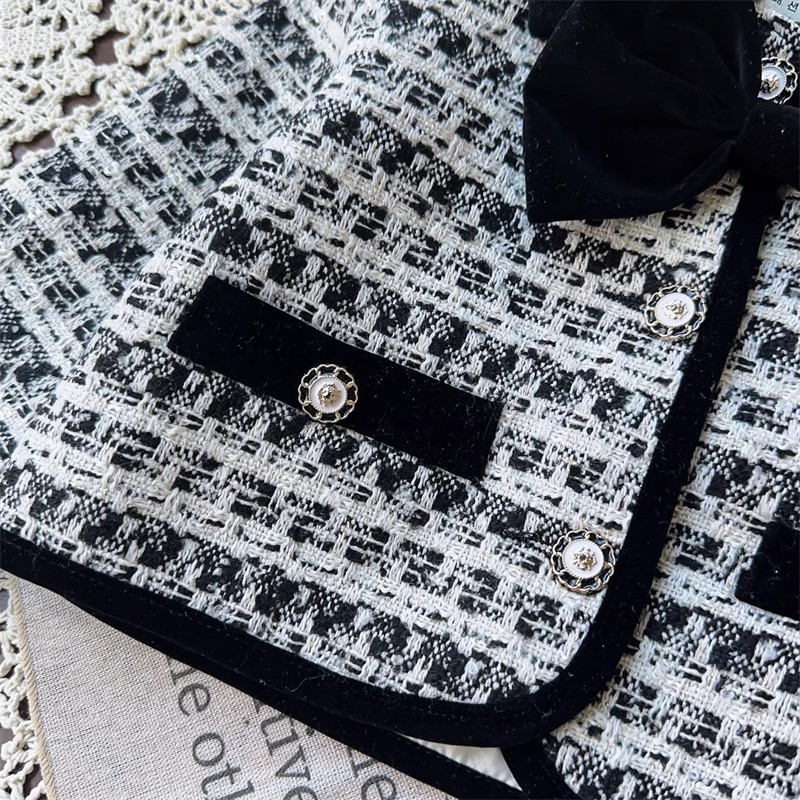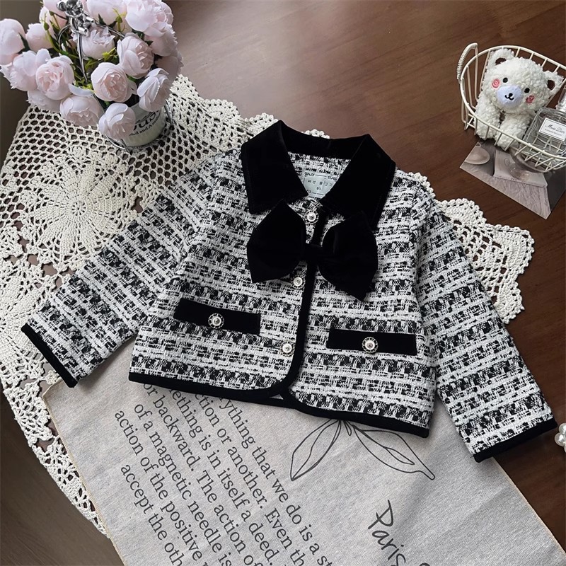 소녀 활 샤넬 봄과 가을 자켓 어린이 최고 중소 어린이 격자 무늬 짧은 소녀 코트