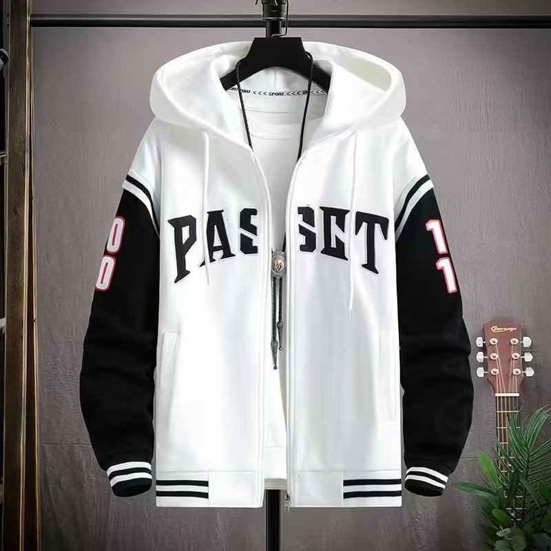 2024 새로운 남성 코트 봄과 가을 느슨한 패셔너블 캐주얼 후드 카디건 스웨터 재킷 남자 가을과 겨울 탑스토어 가기