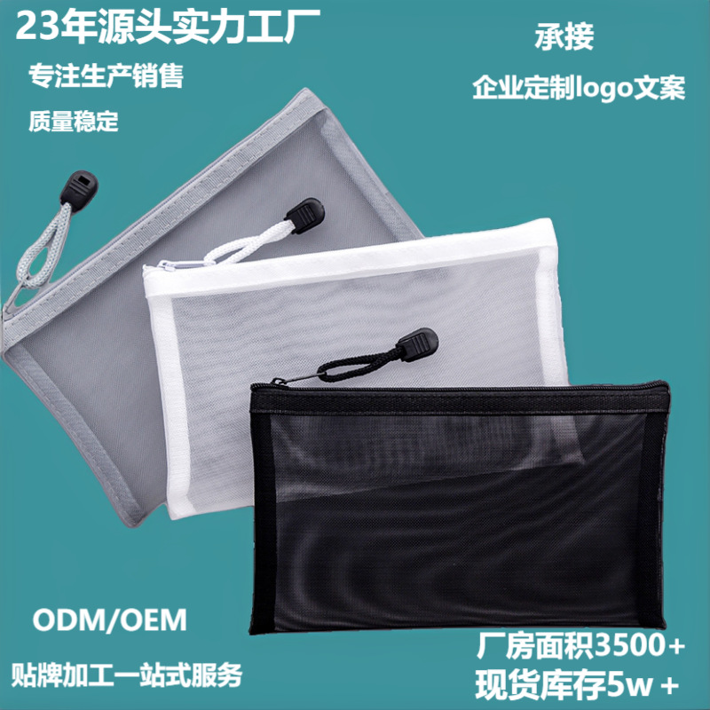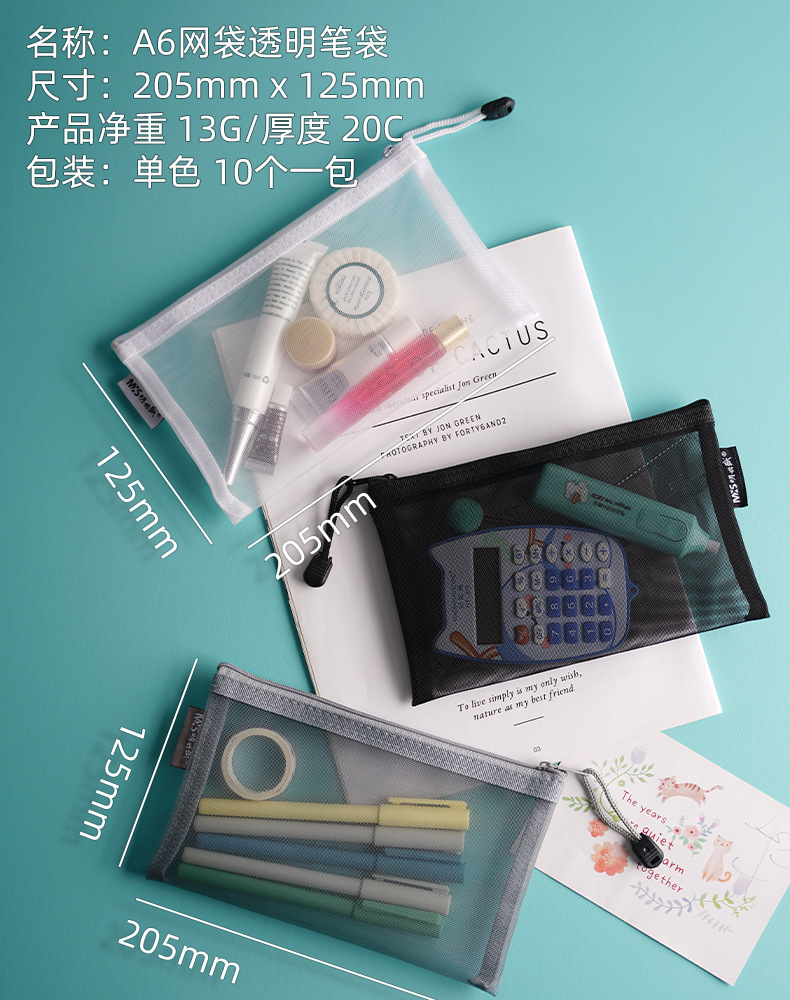 맞춤형 A6 대용량 연필 가방 투명 메쉬 연필 가방 학생 시험 간단한 저장 파일 가방 처리 OEM스토어 가기
