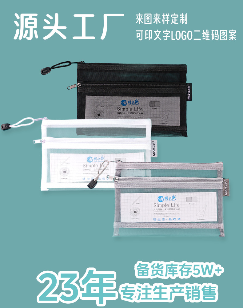 맞춤형 A6 대용량 연필 가방 투명 메쉬 연필 가방 학생 시험 간단한 저장 파일 가방 처리 OEM