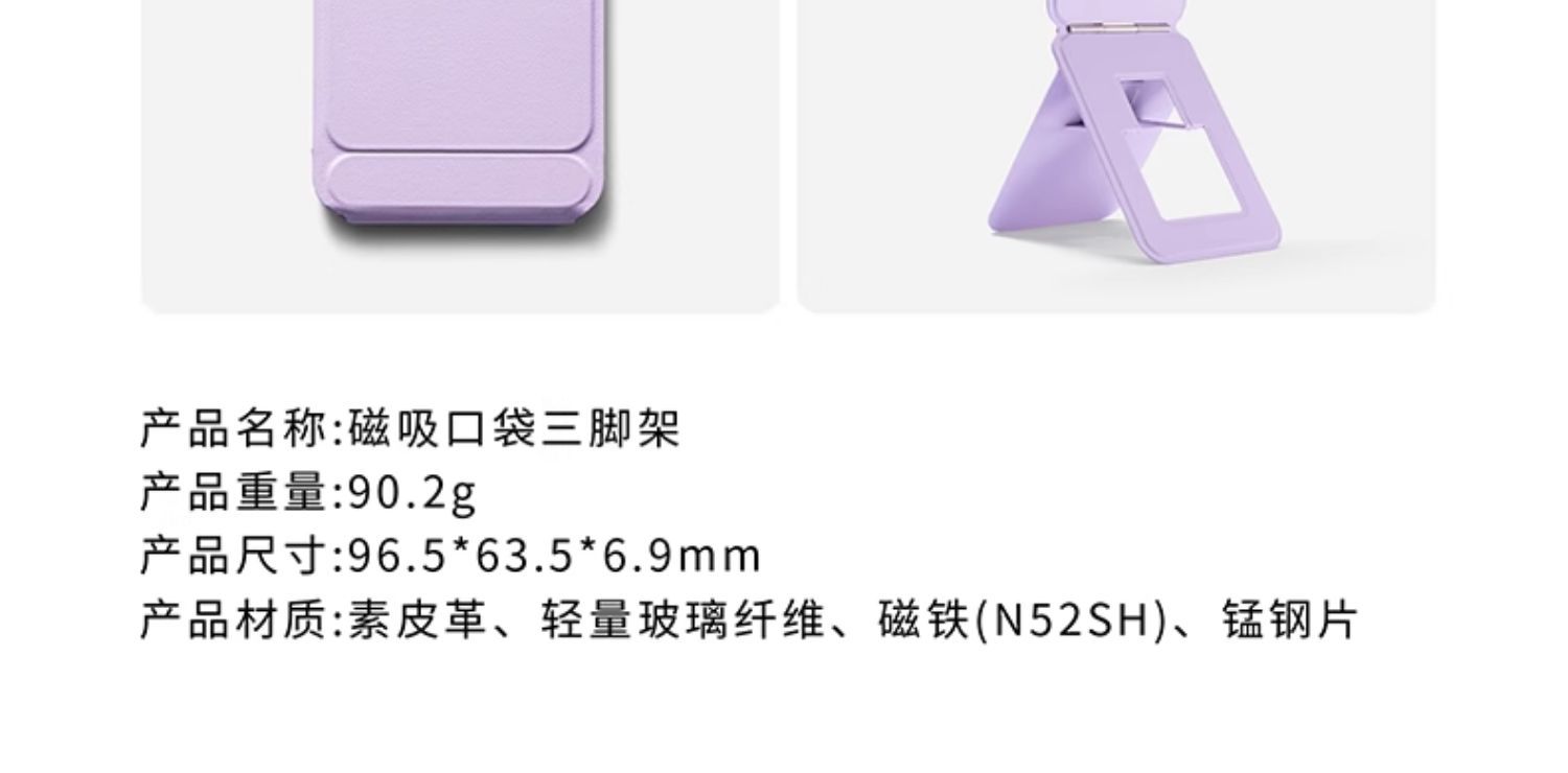 产品材质:素皮革、轻量玻璃纤维、磁铁(N52SH)、锰钢片