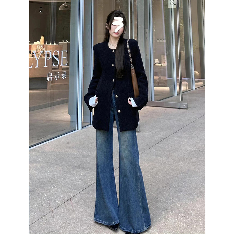 175 키 긴 레트로 마이크로 플레어 청바지 여성의 봄과 가을 높은 허리 느슨한 넓은 다리 180 슈퍼 롱 바지스토어 가기