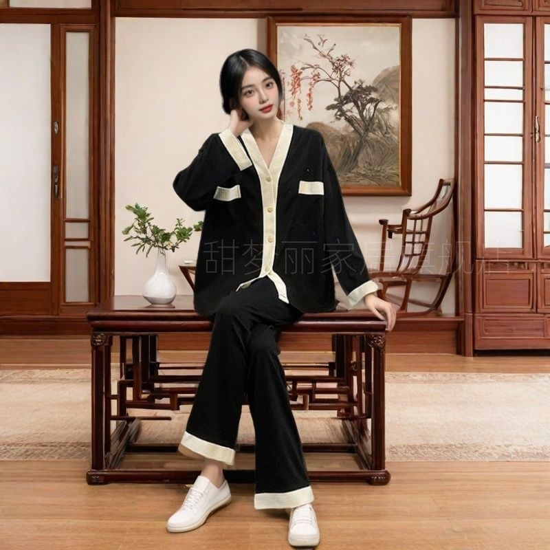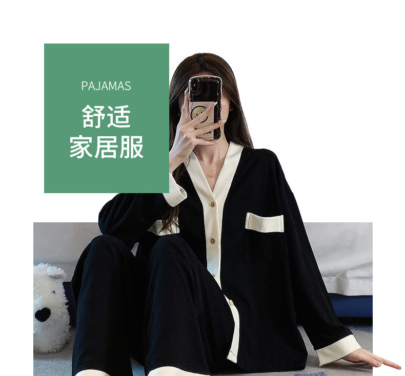 가을 새로운 솔리드 컬러 코튼 하이 엔드 센스 인터넷 축하 만화 패션 귀여운 잠옷 레이스 긴 소매 홈 의류 세트스토어 가기