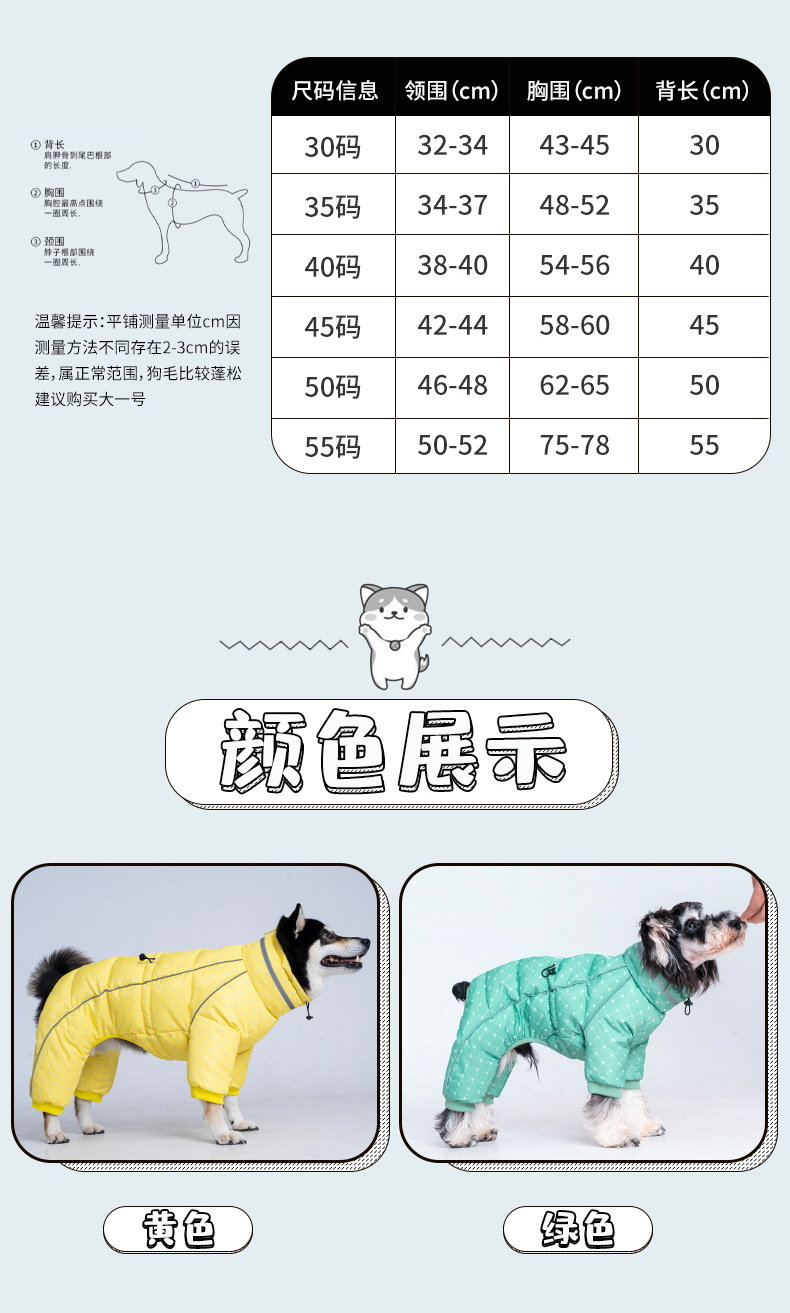 애완 동물 의류 공장 직접 가을과 겨울 두꺼운 결합 된 네 다리 옷 방수 개면 패딩 애완 동물 옷스토어 가기