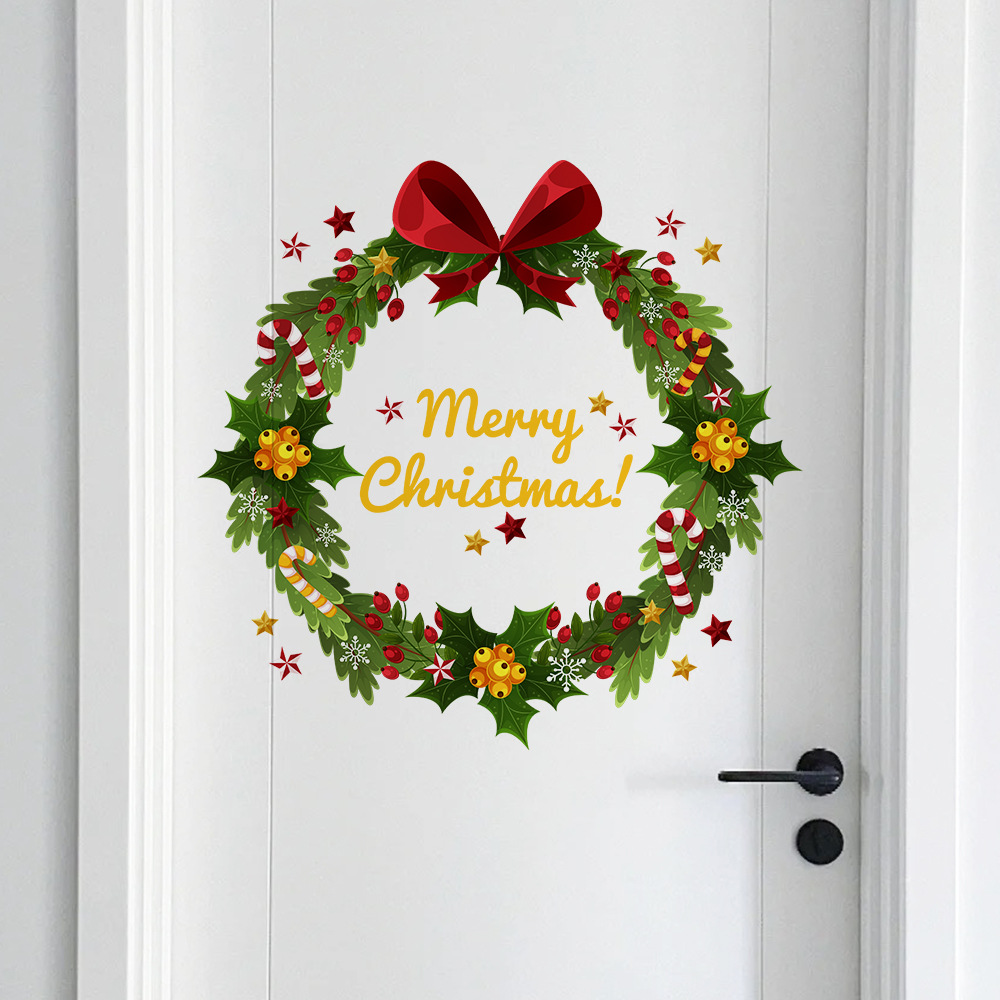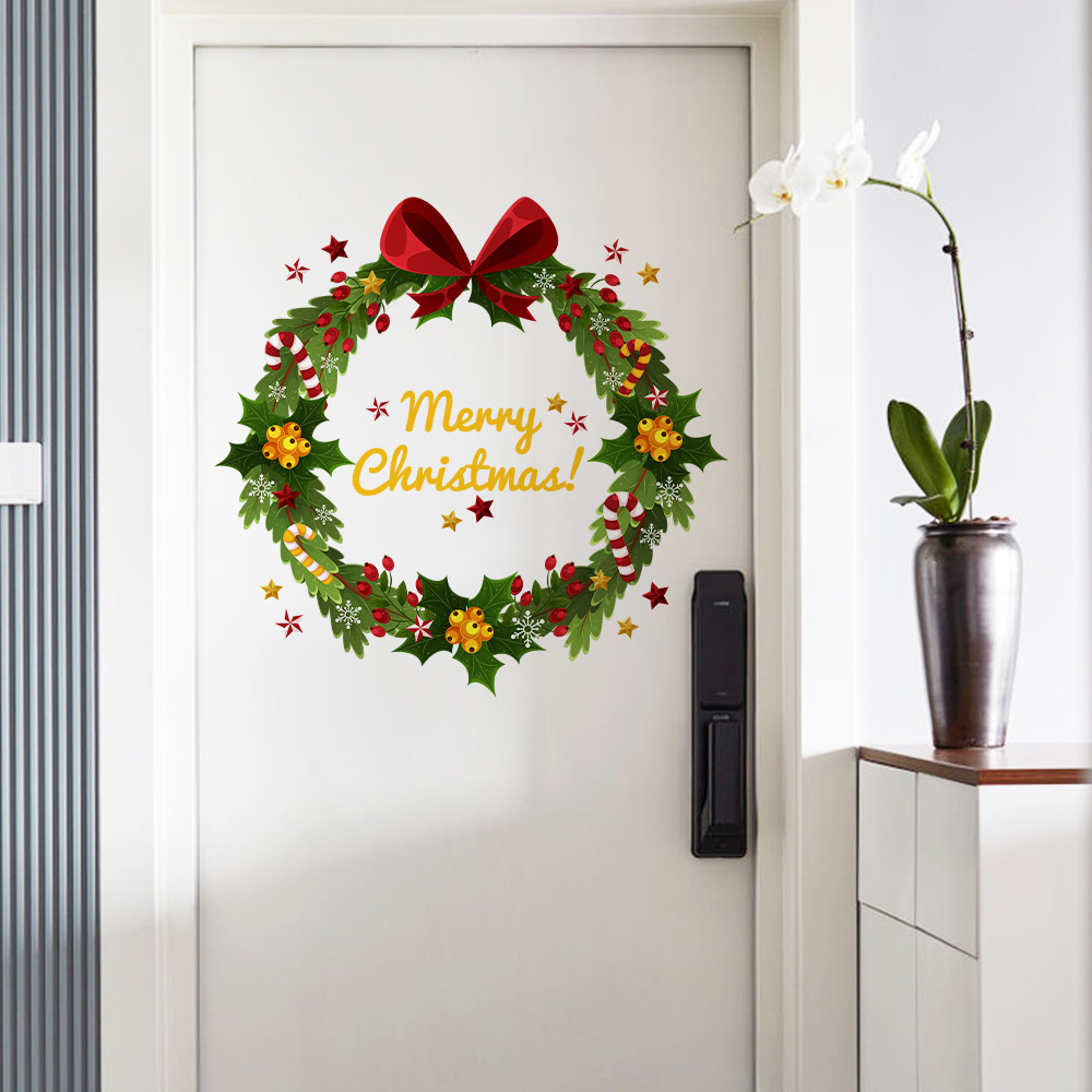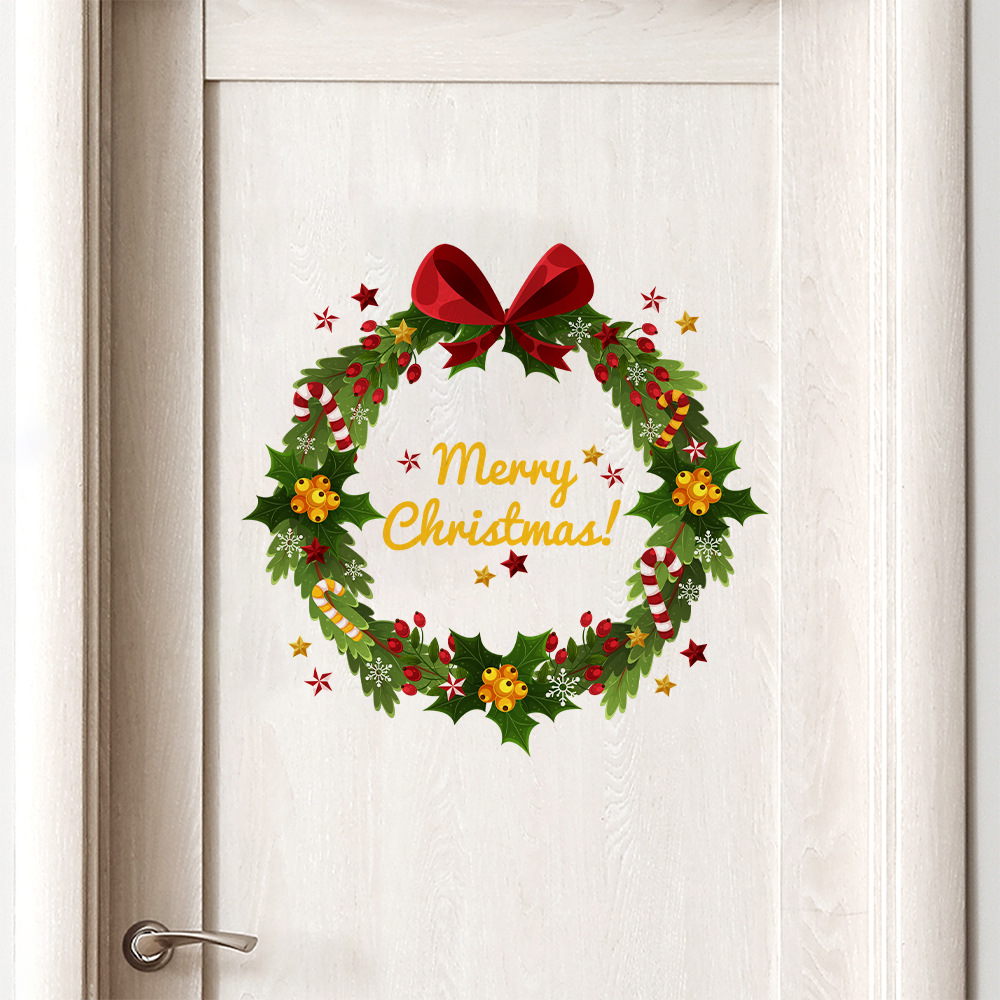 Yiyao DD3351 크리스마스 스틱 리프 리본 화환 문 스티커 방 침실 문 다시 벽 장식 스티커