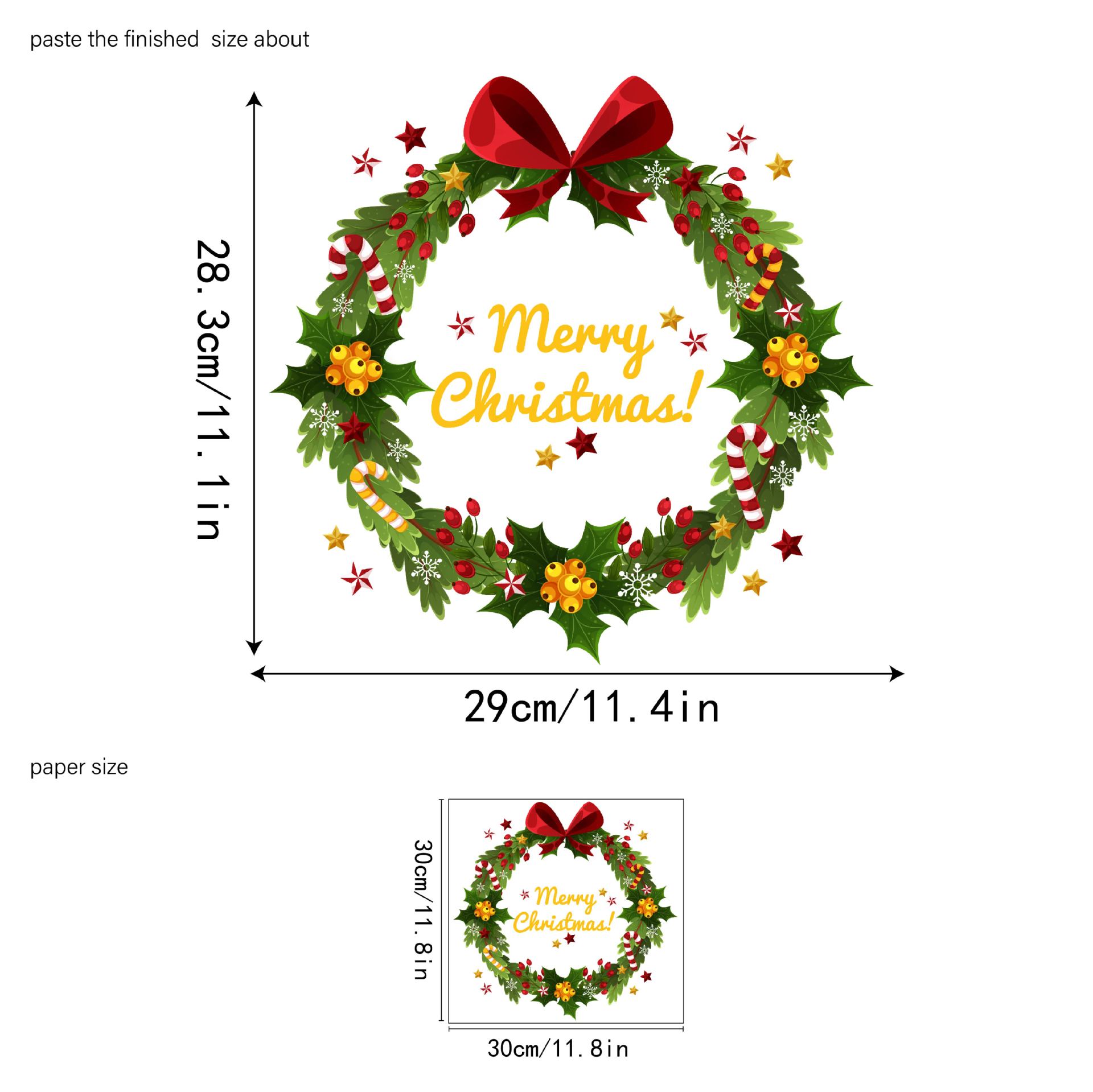 Yiyao DD3351 크리스마스 스틱 리프 리본 화환 문 스티커 방 침실 문 다시 벽 장식 스티커스토어 가기
