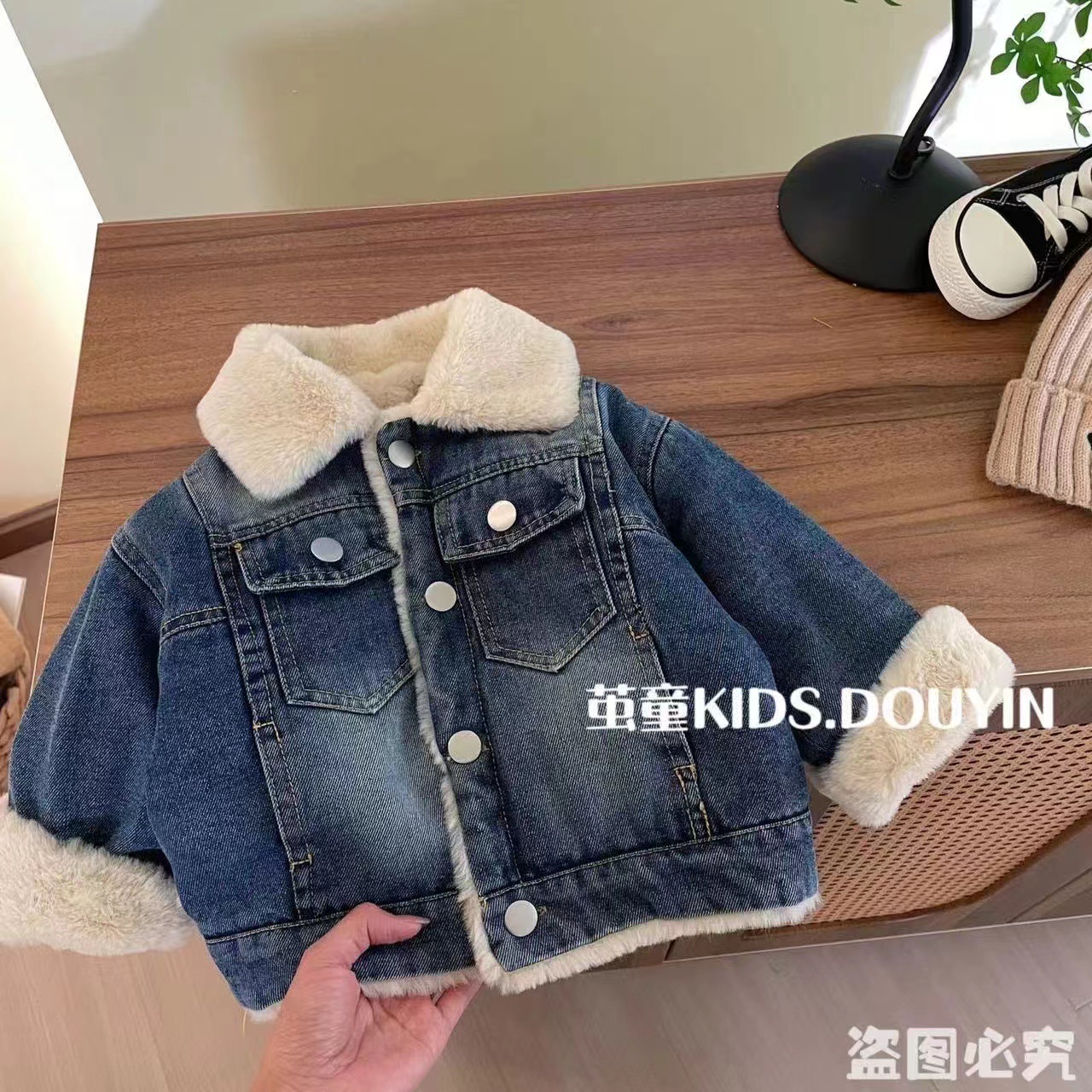 어린 이용 데님 코트 기모 가을과 겨울 아기 소녀 새 소녀 두꺼운 토끼 모피 옷깃 재킷 코트스토어 가기