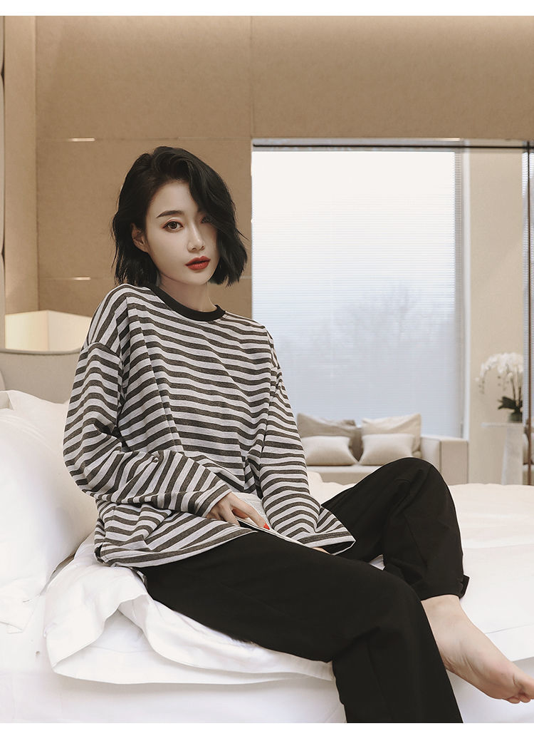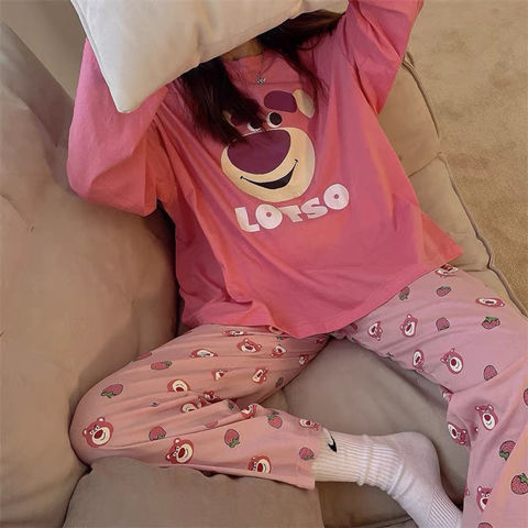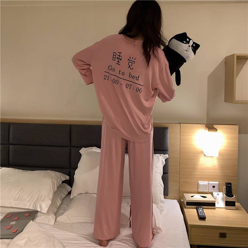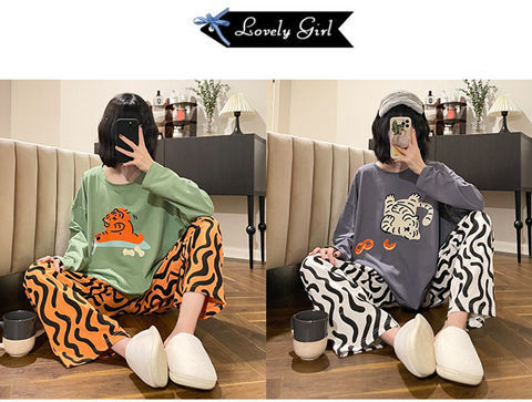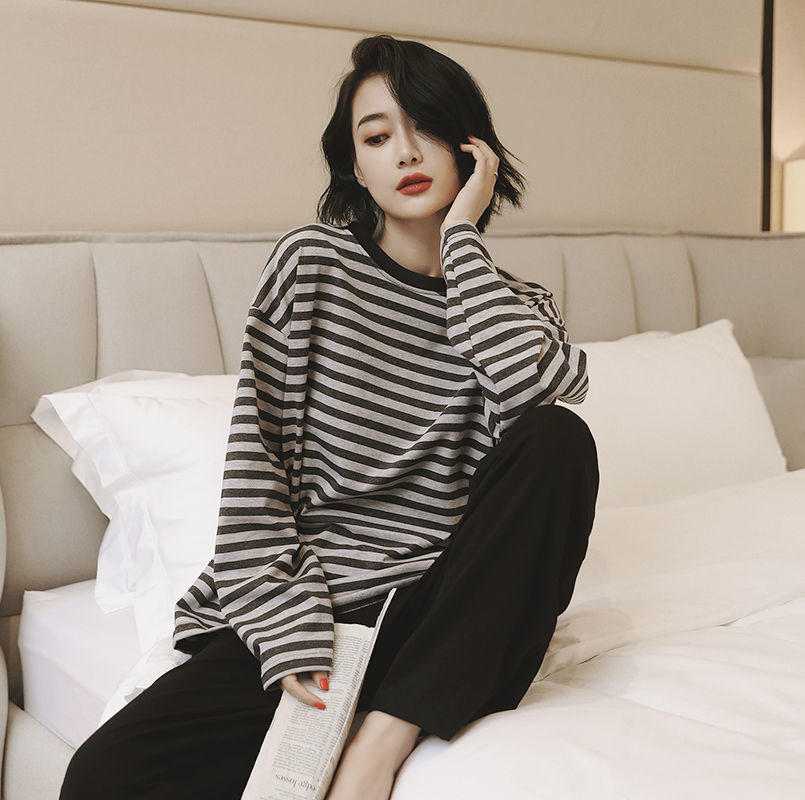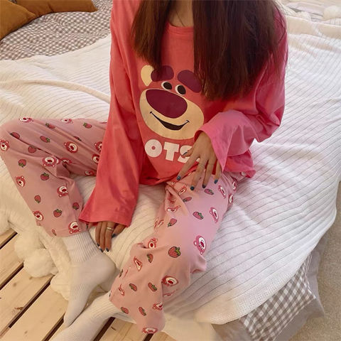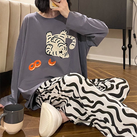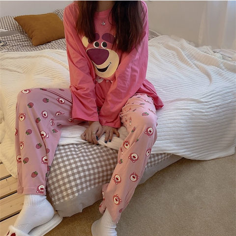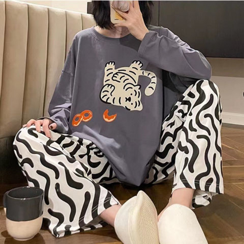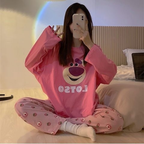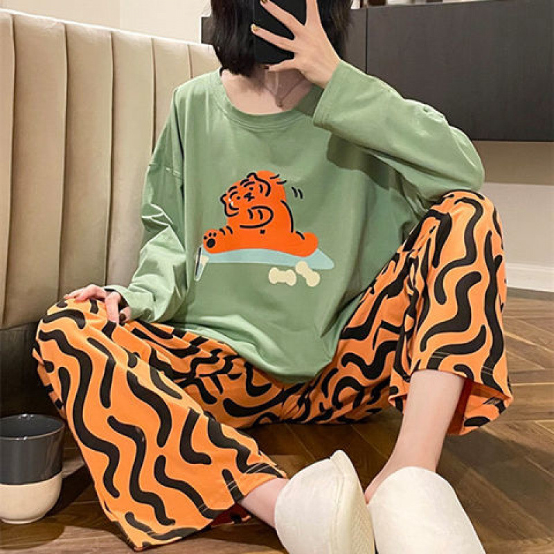 잠옷 여성의 봄과 가을 새로운 한국식 만화 느슨한 긴 소매 2 세트 학생 플러스 사이즈 집 옷스토어 가기