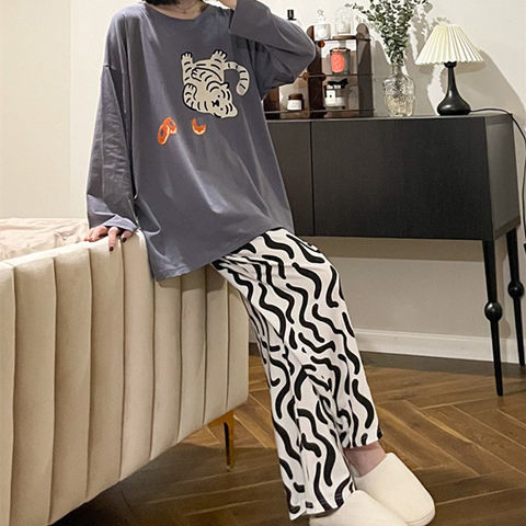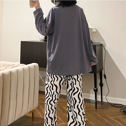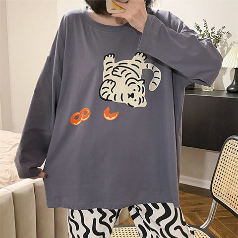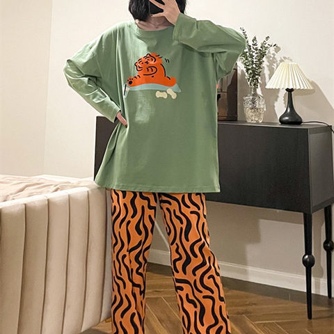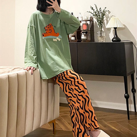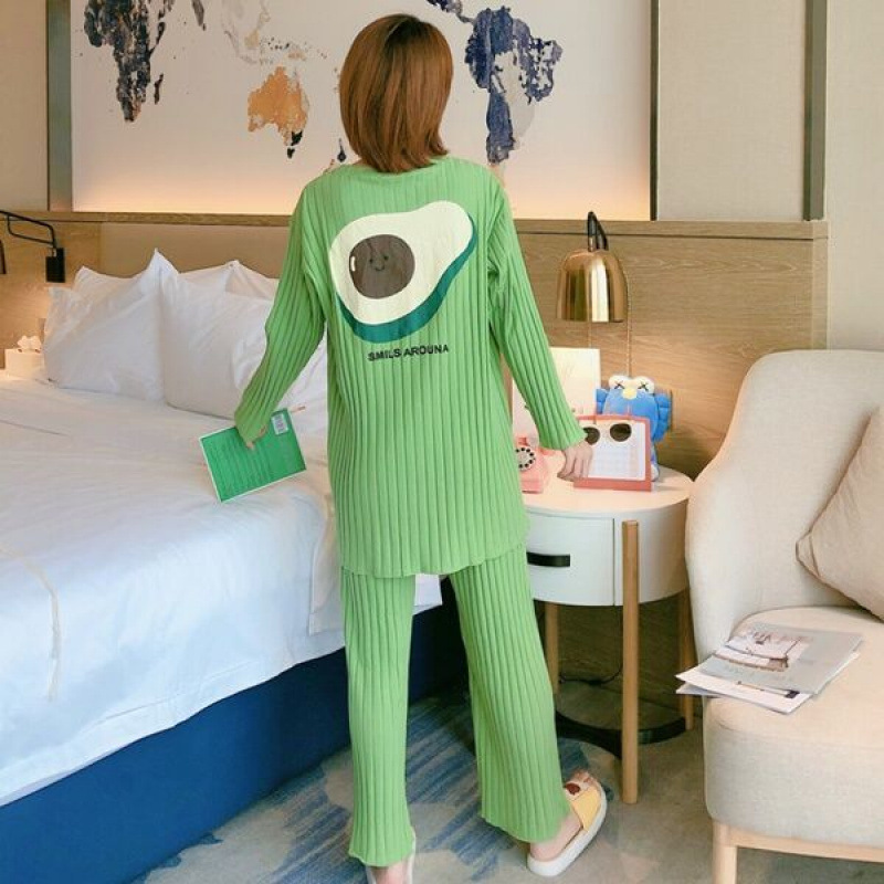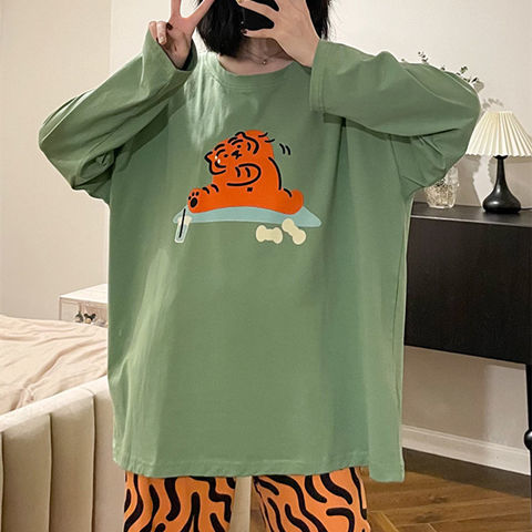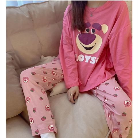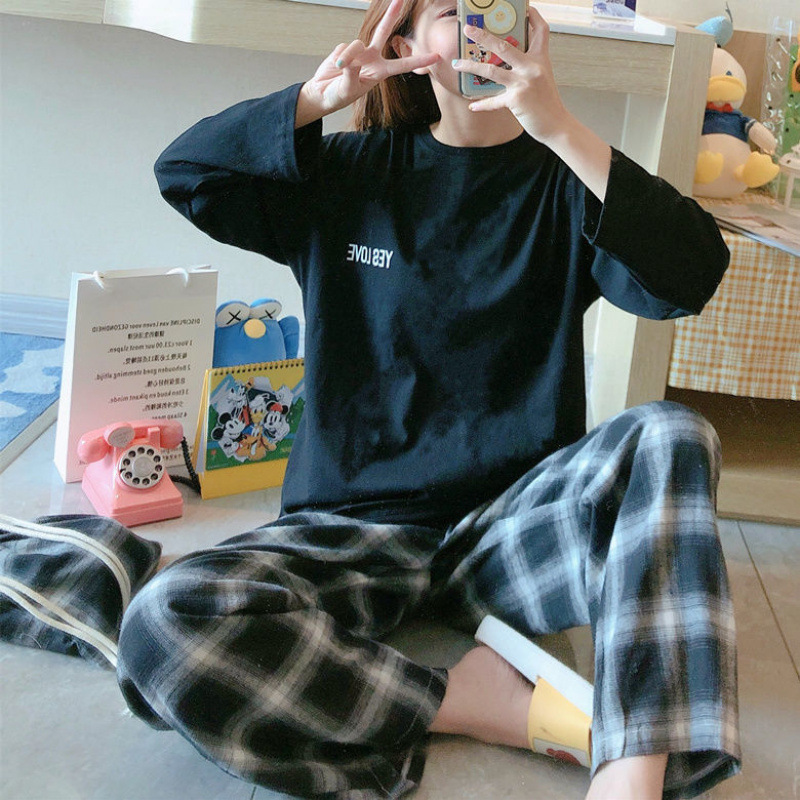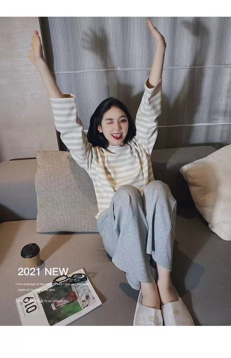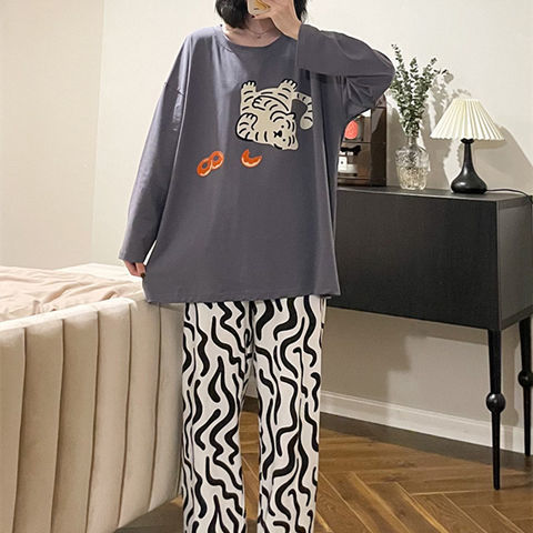 잠옷 여성의 봄과 가을 새로운 한국식 만화 느슨한 긴 소매 2 세트 학생 플러스 사이즈 집 옷스토어 가기