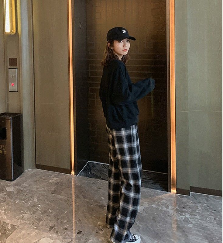 • 블랙 스트라이프 긴팔 탑 + 블랙 스트레이트 팬츠