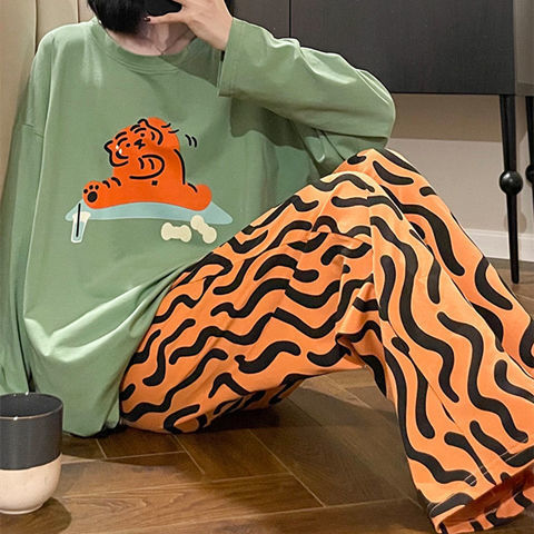 • 짙은 녹색 노란색 호랑이 긴팔 상의 + 노란색 바지