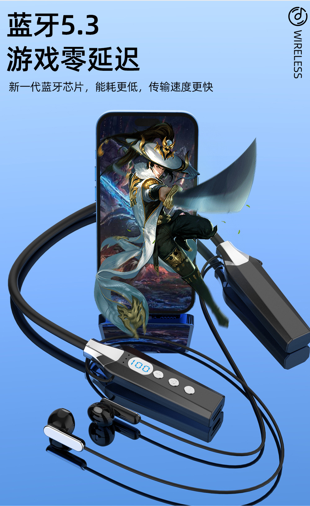 무선 넥밴드 블루투스 이어폰 러닝 스포츠 노래방 겸용 재고 도매 소음 감소 게이밍 저지연