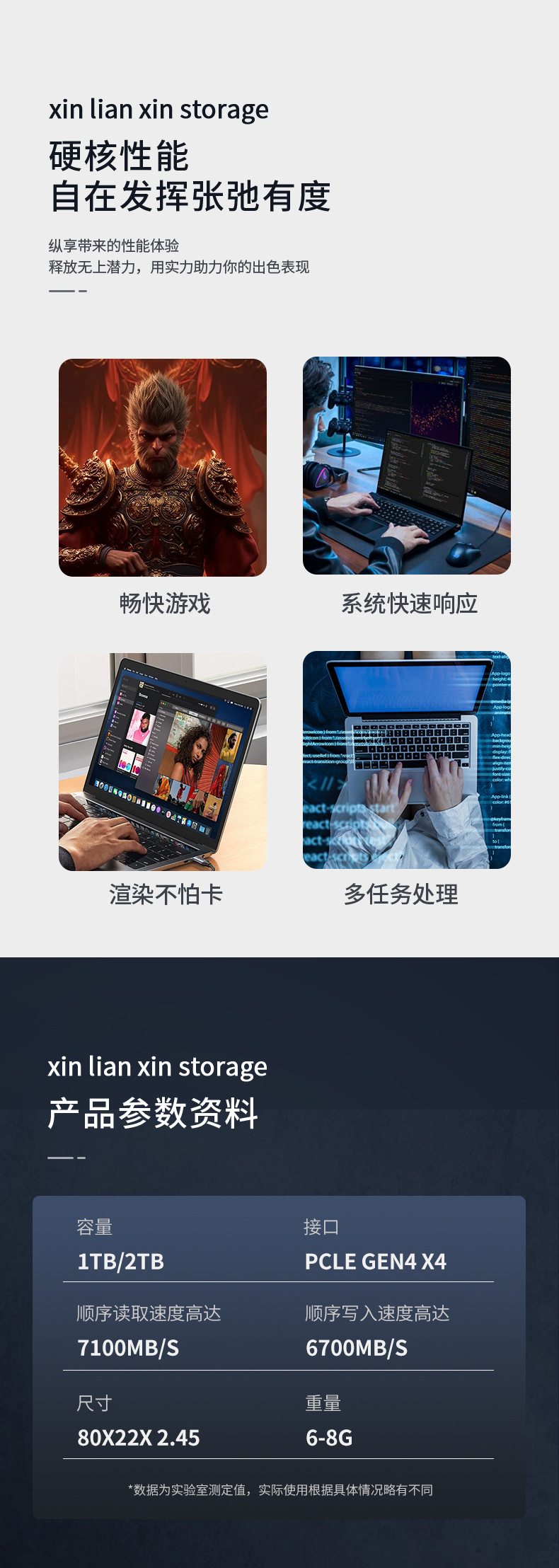 Xinlian 새로운 1T2TB4TB 솔리드 스테이트 드라이브 m2 PCI-e4 독립 캐시 노트북 데스크탑 T7000스토어 가기