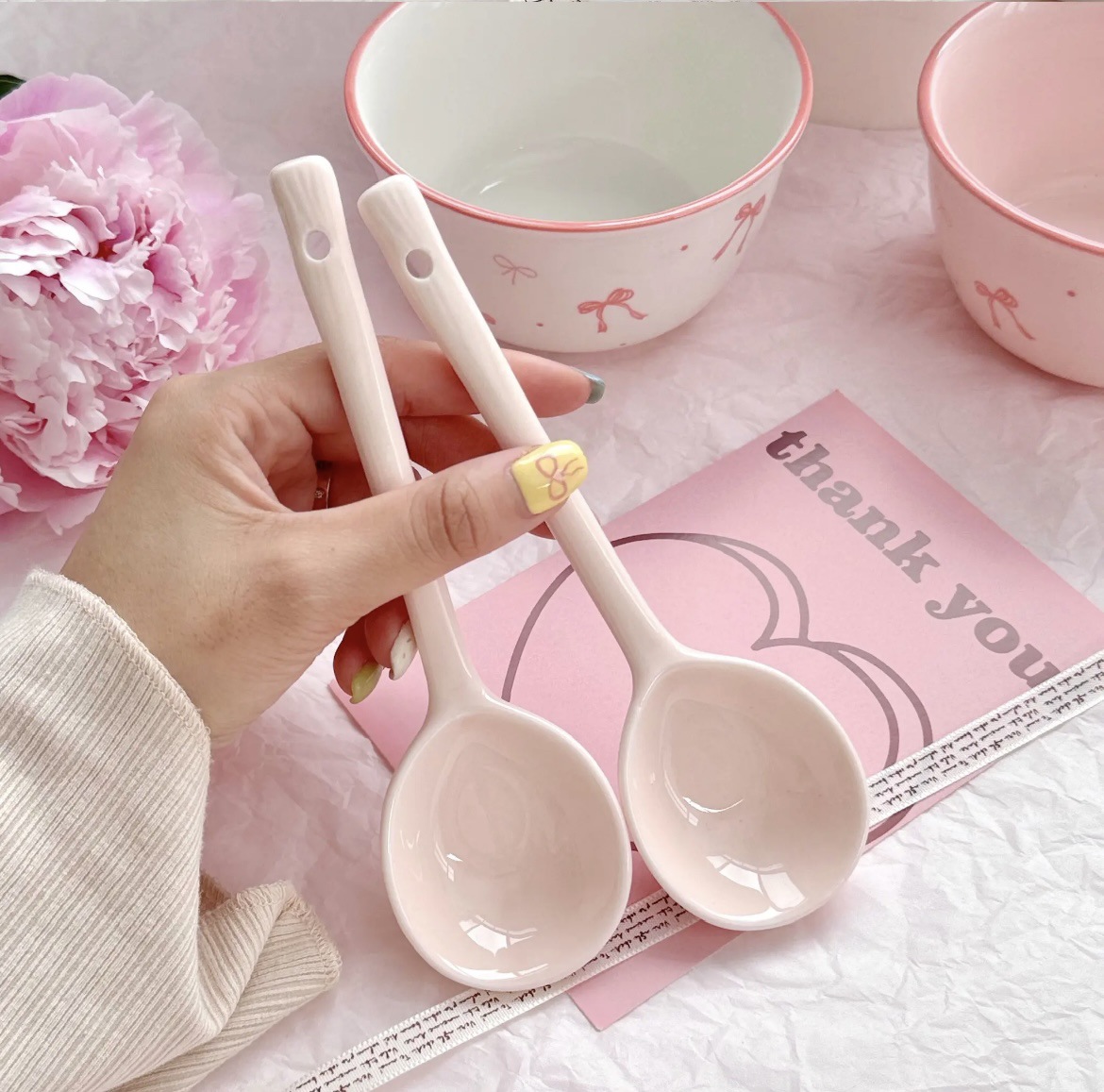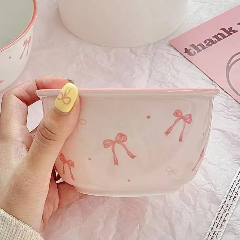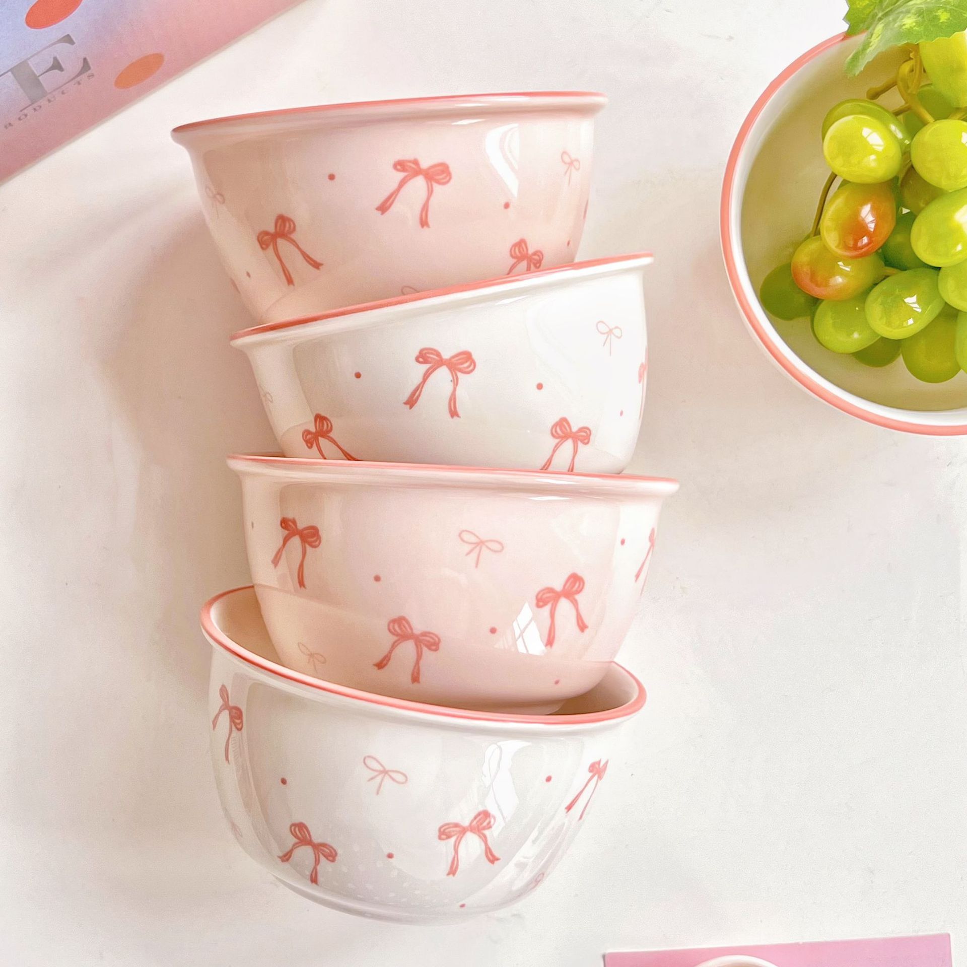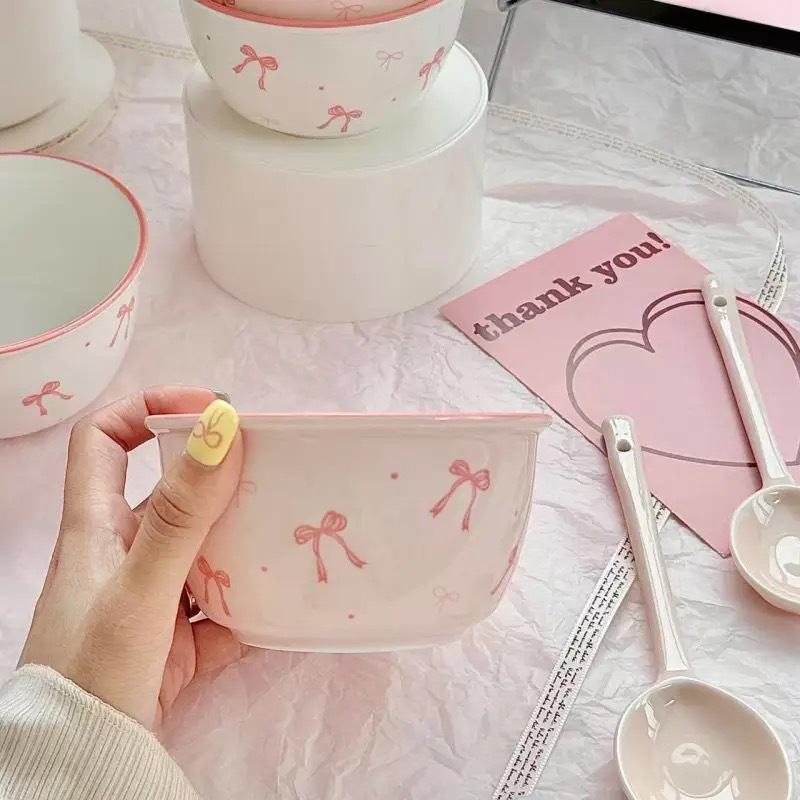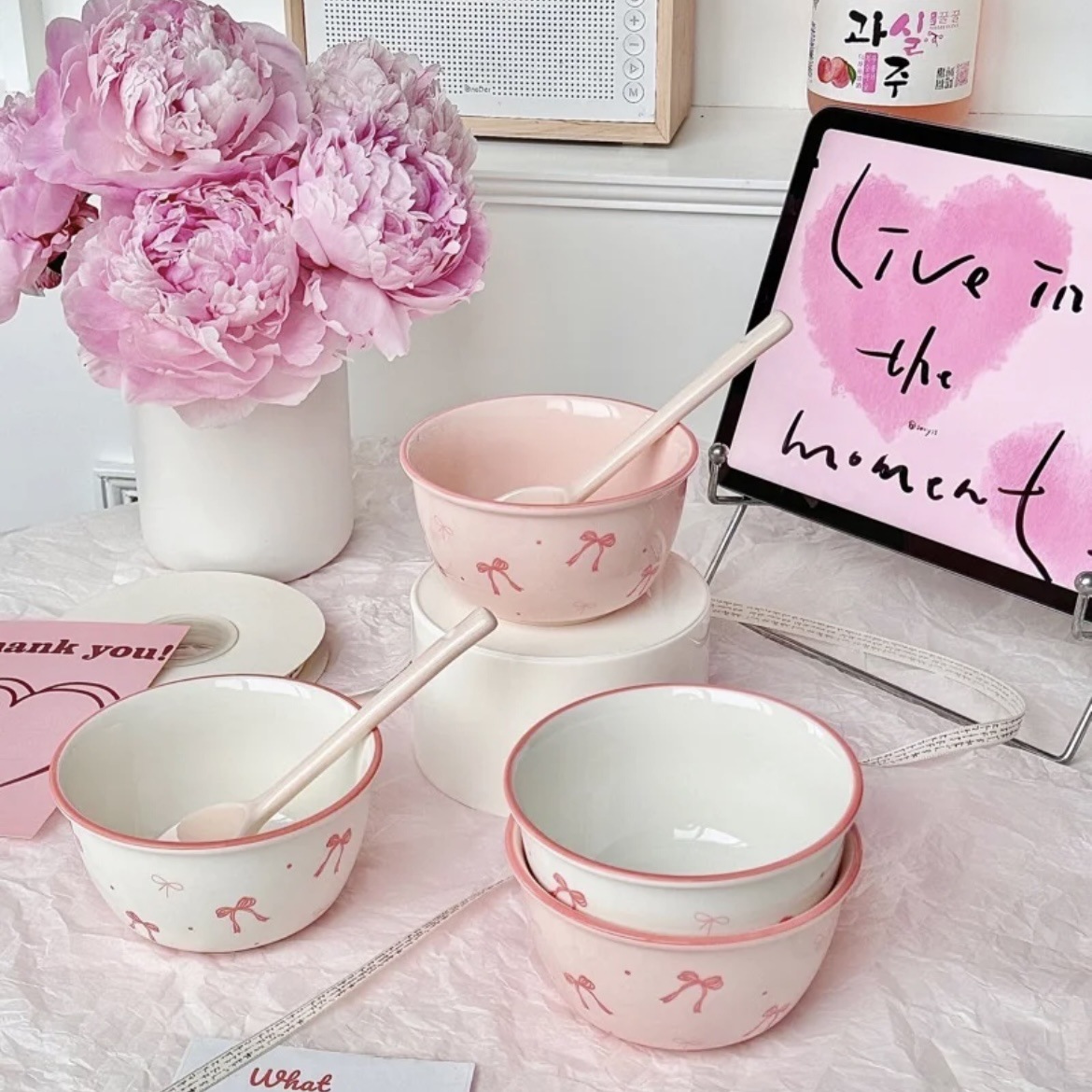 • [그릇 1개, 스푼 1개] 핑크 리본 그릇 + 핑크 스푼