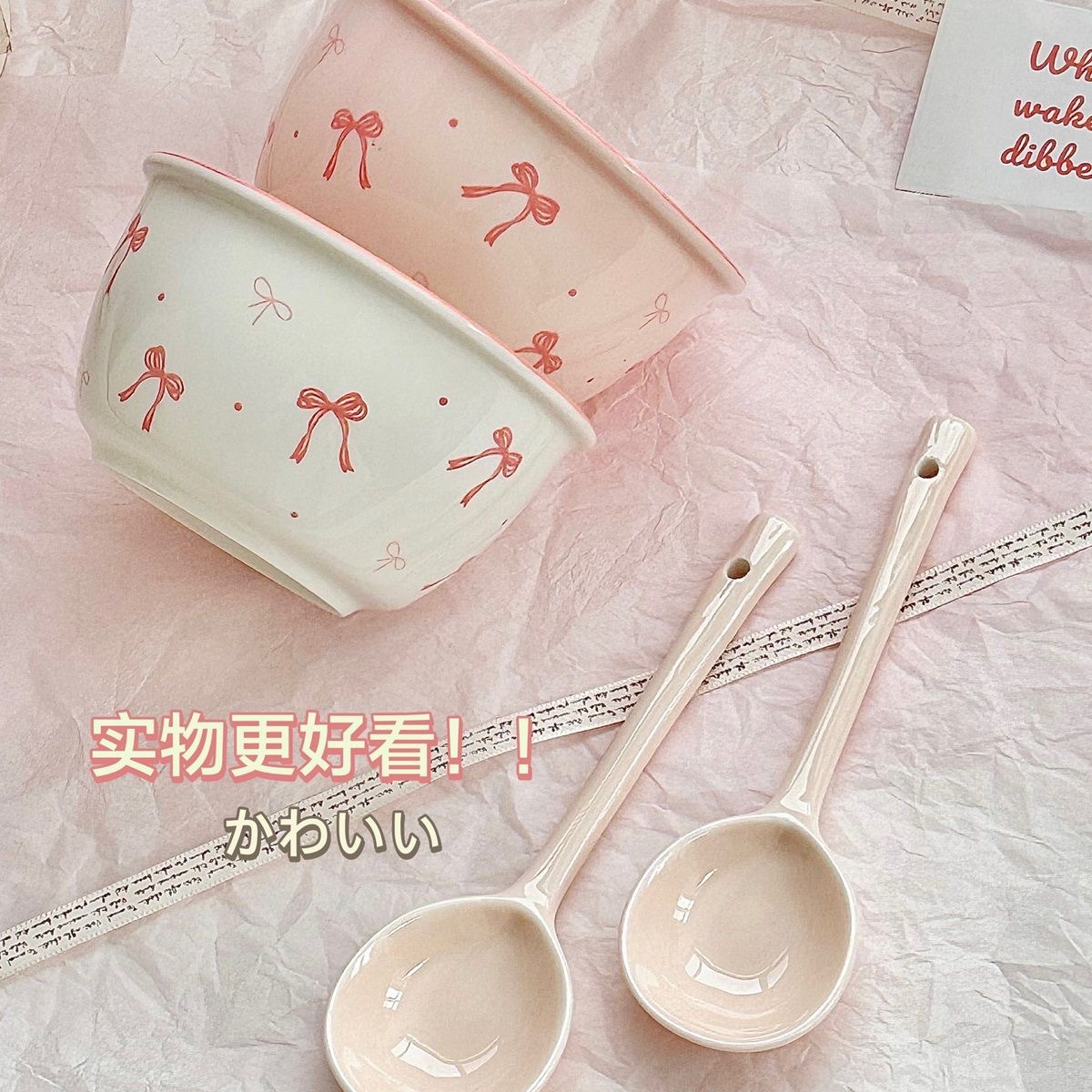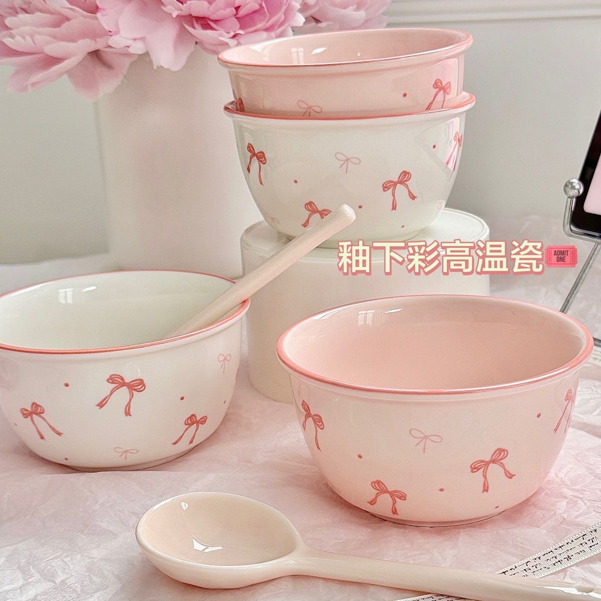 활 밥 그릇 소녀의 심장 세라믹 그릇 스푼 유약 색상 높은 색상 가치 식기 쌀 그릇 디저트 그릇스토어 가기