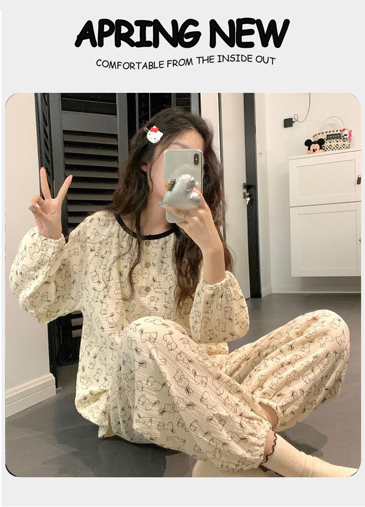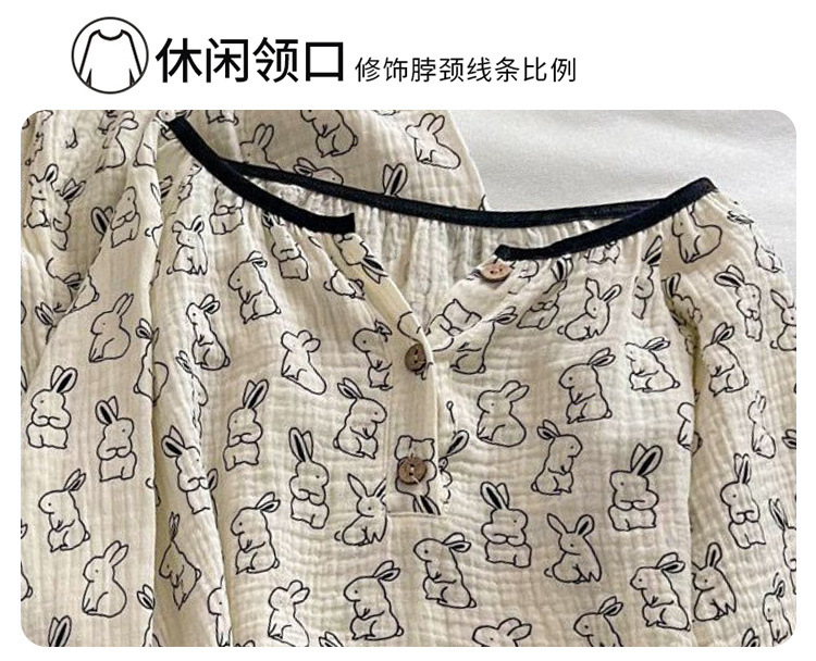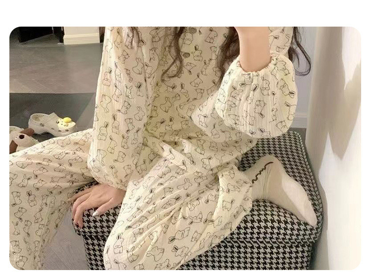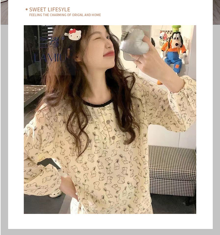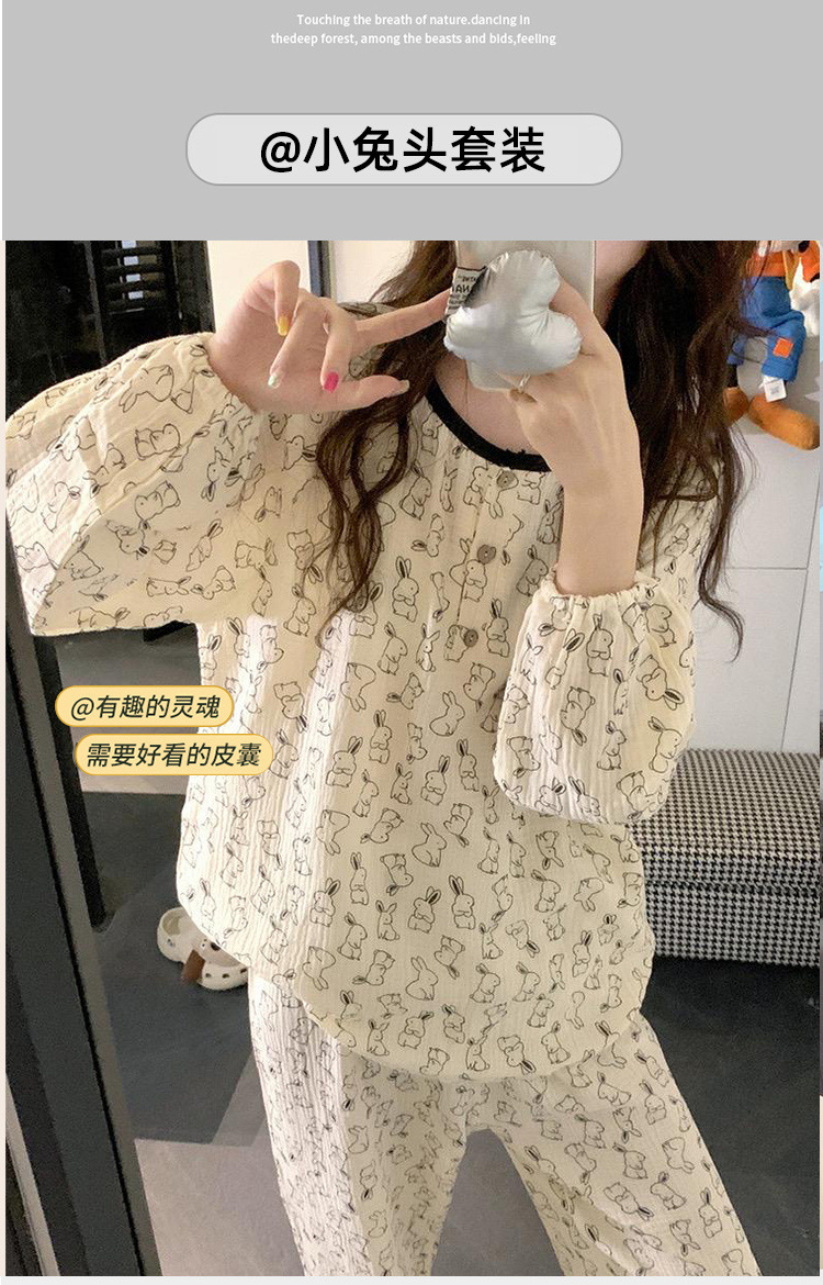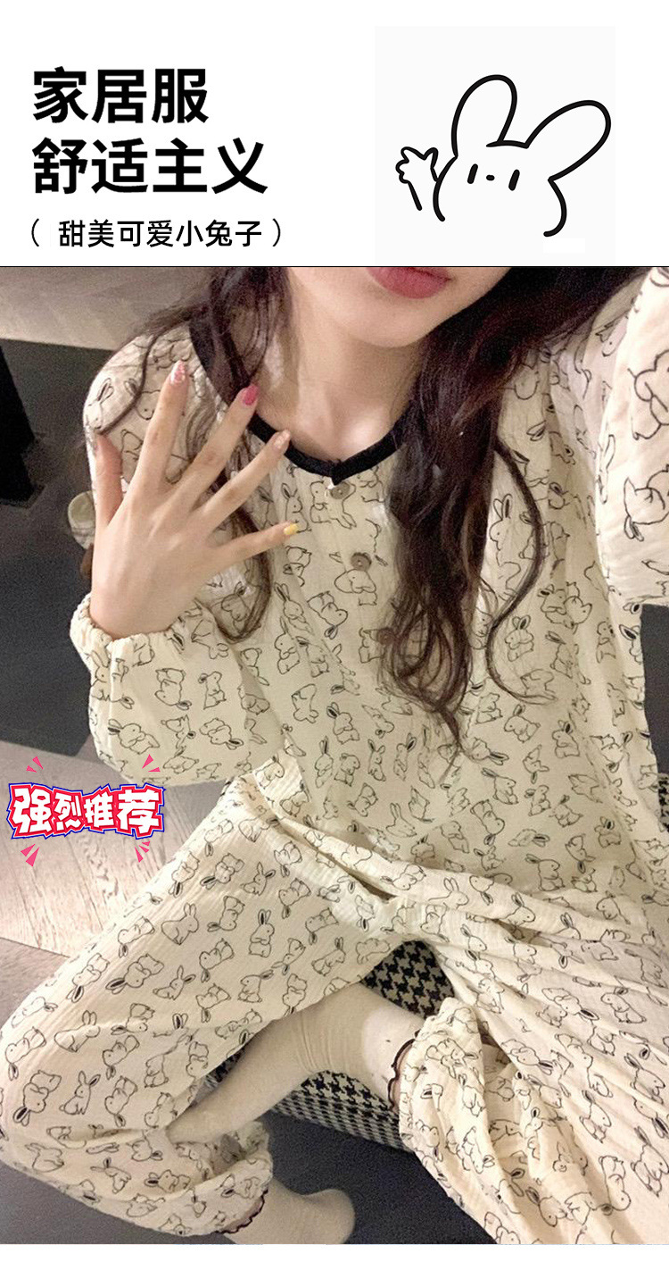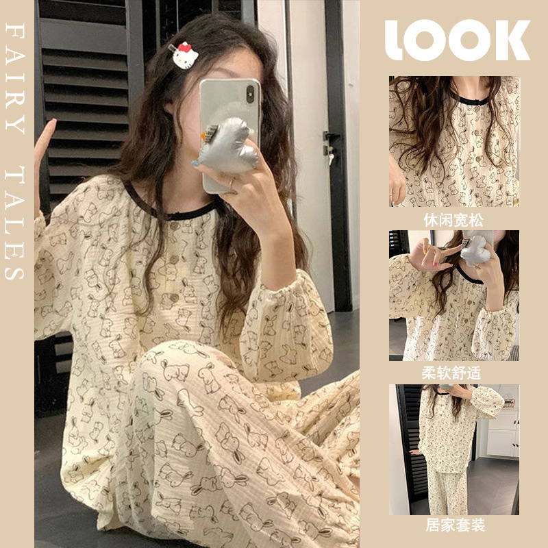 봄과 가을 만화 토끼 긴 소매 바지 잠옷 여성 폭발 2024 새로운 학생 달콤한 귀여운 세트 홈 옷