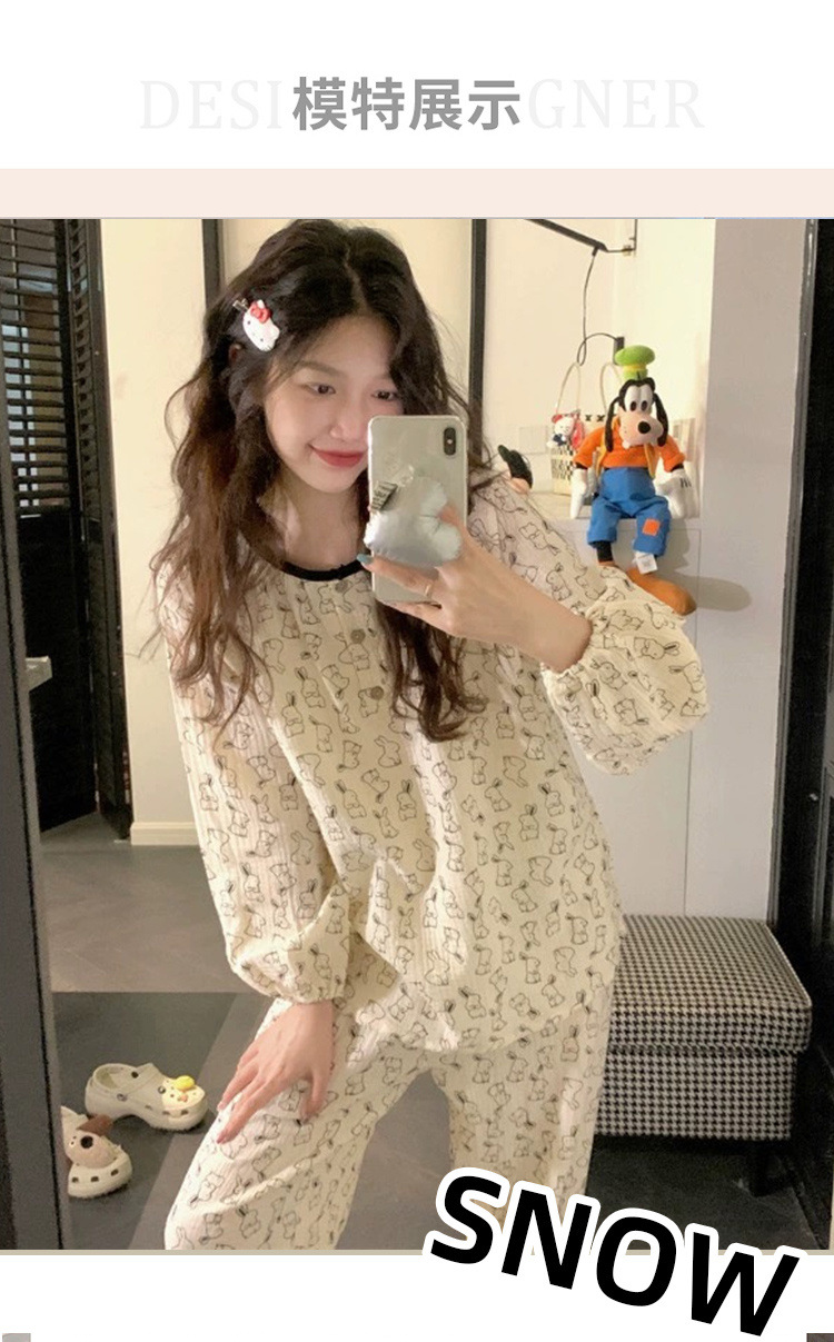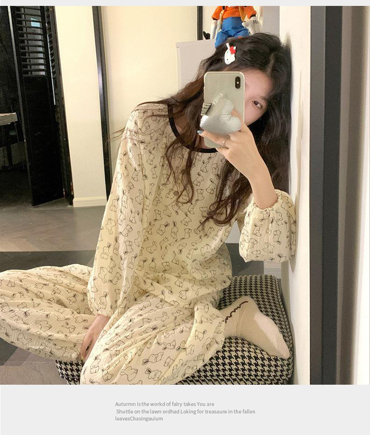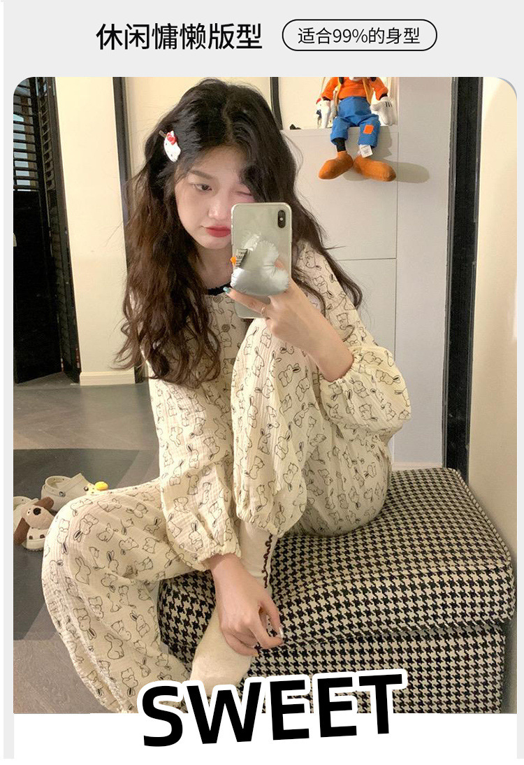 봄과 가을 만화 토끼 긴 소매 바지 잠옷 여성 폭발 2024 새로운 학생 달콤한 귀여운 세트 홈 옷스토어 가기