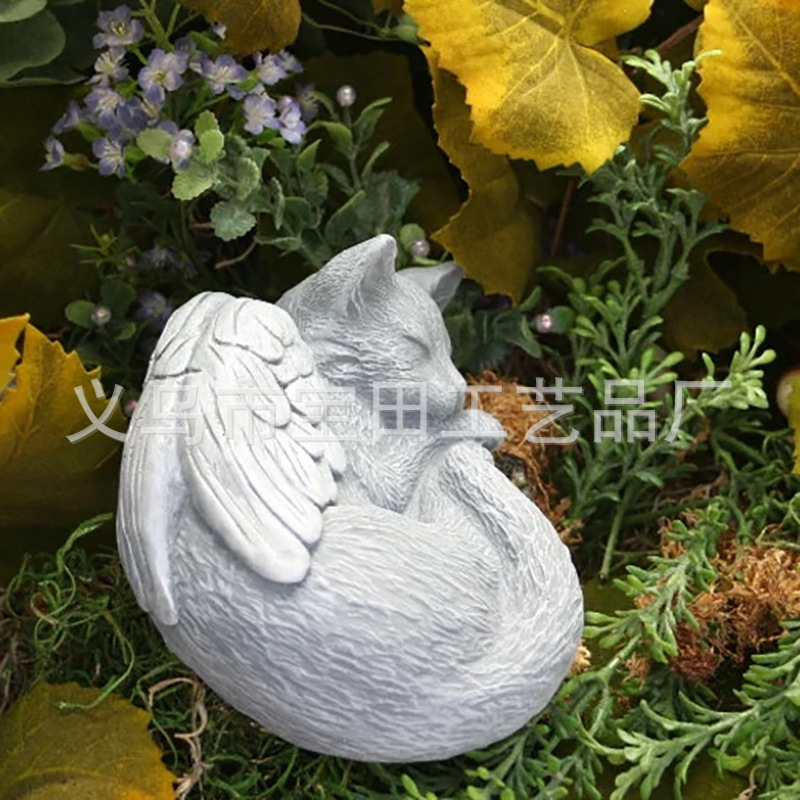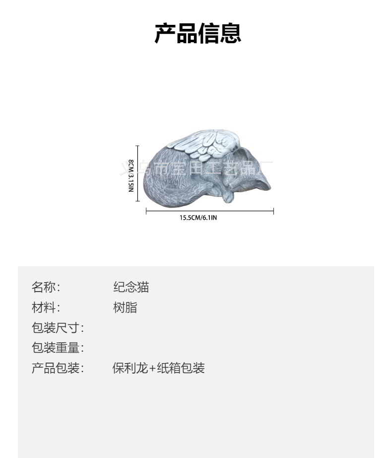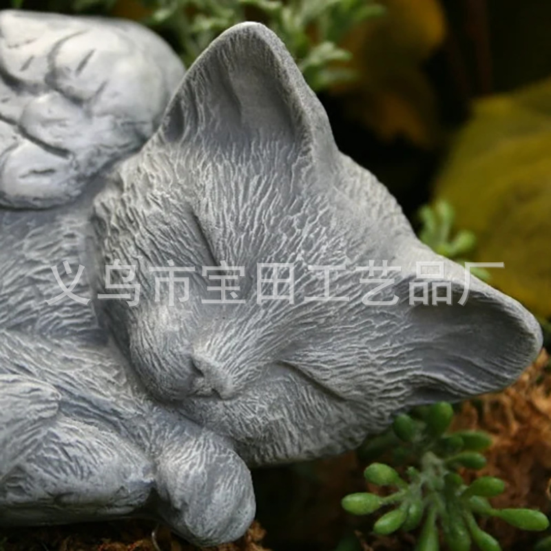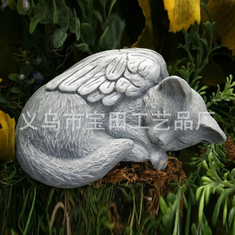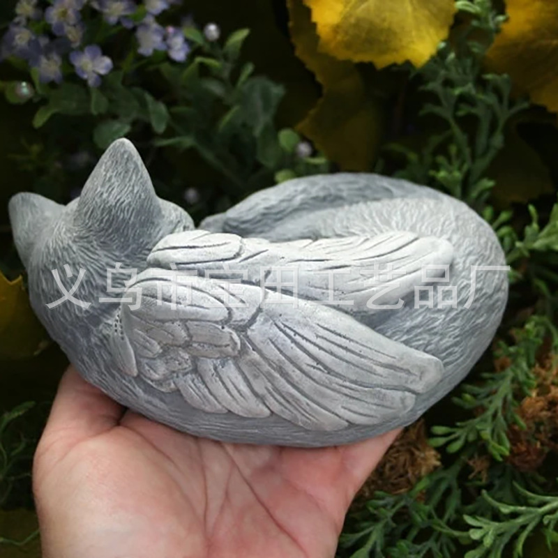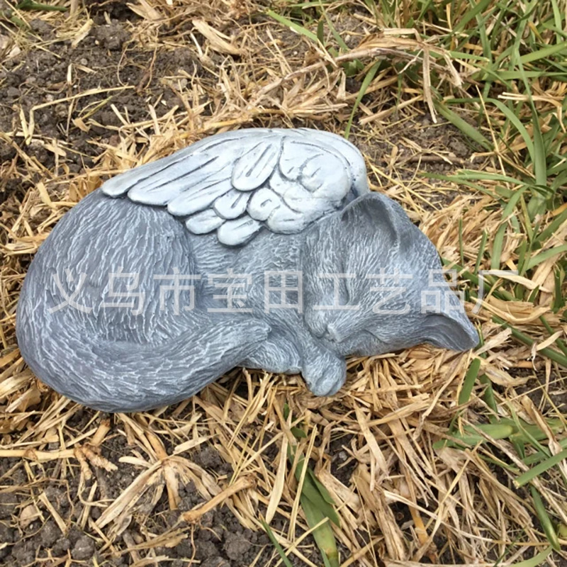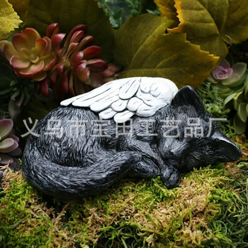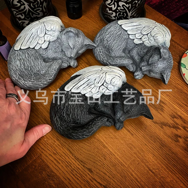 국경 간 새로운 도착 수지 천사 회색 고양이 검은 고양이 동상 애완 동물 기념 고양이 수지 동상 장식품스토어 가기