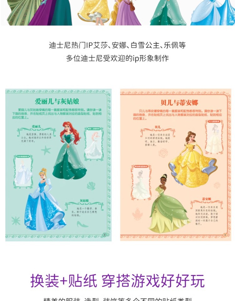 공주 아이샤 원피스 스티커 책 소녀 어린이 만화 스티커 냉동 0 ~ 3 세 아이샤 백설 공주