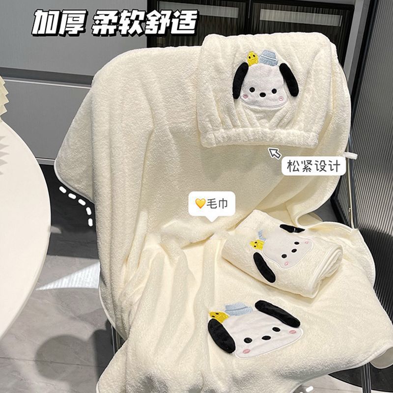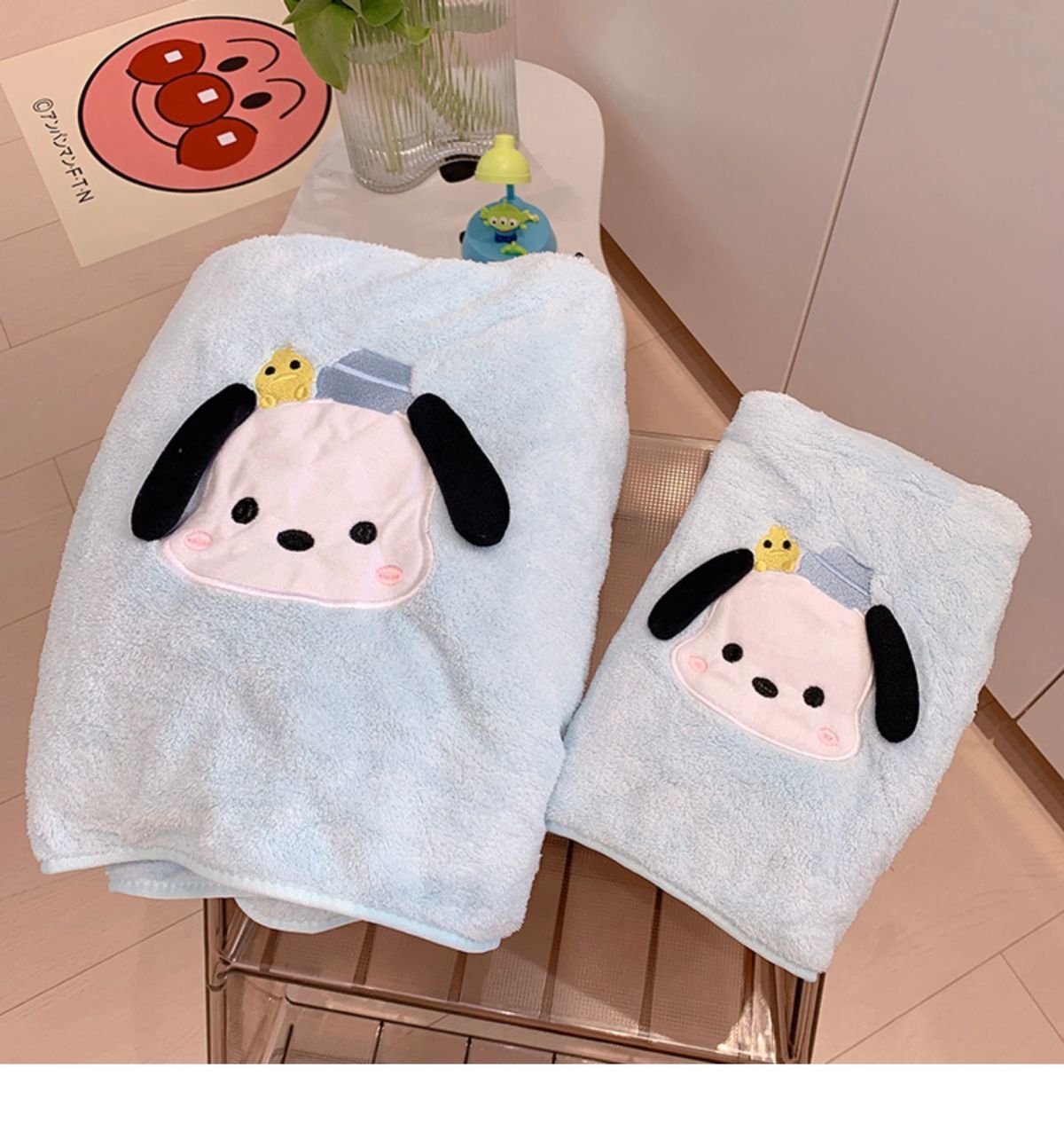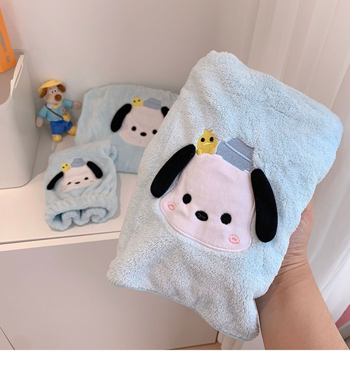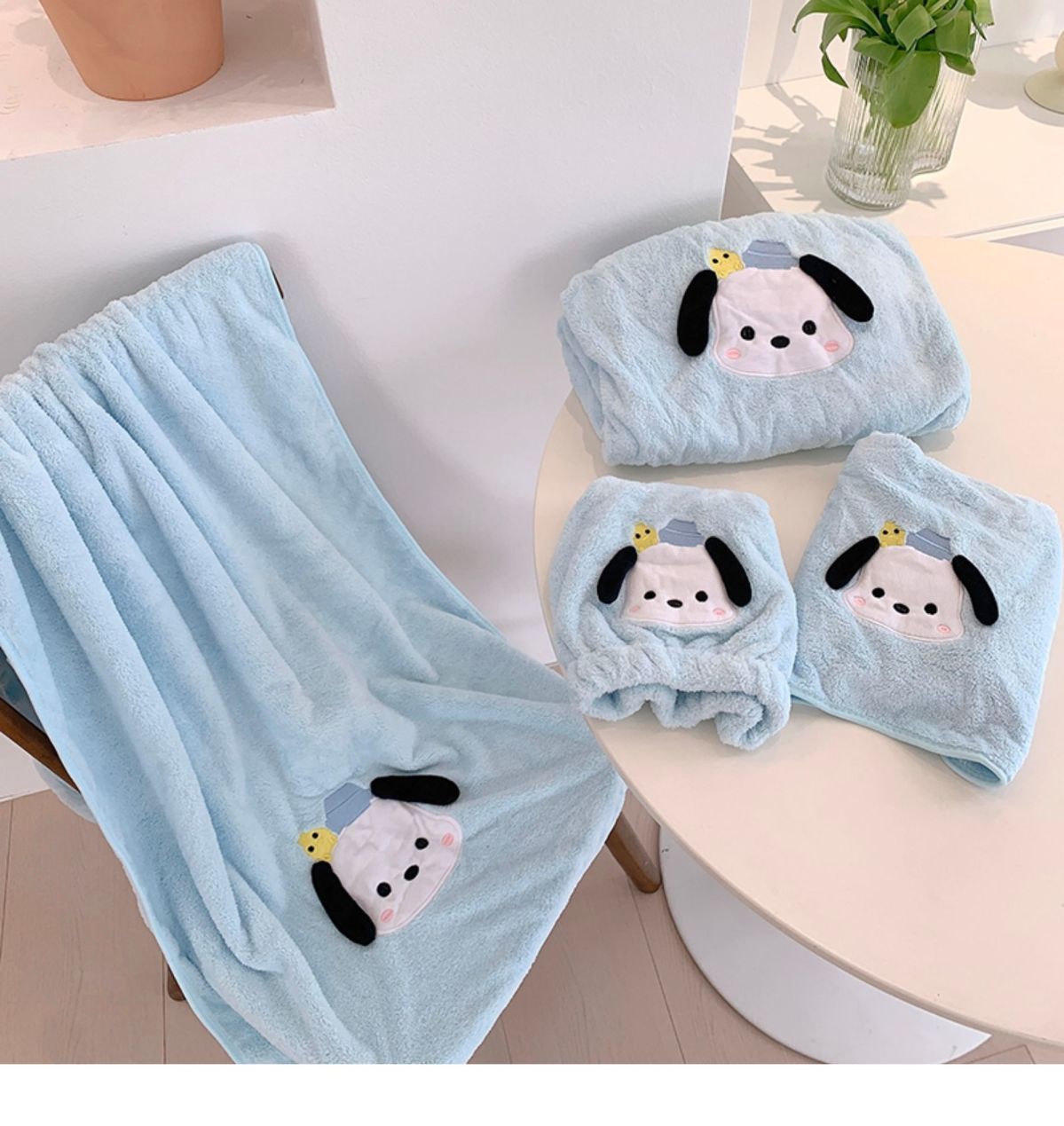 Parchal Dog Bath Towel 여성의 순수한면 흡수성 산호 양털 타월 드라이 헤어 캡 착용 및 대형 목욕 타월 포장스토어 가기