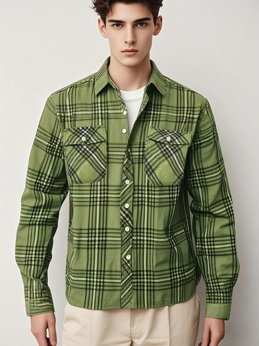 클래식 격자 무늬 아마존 폭발 남성용 맞춤형 긴팔 라셀 셔츠 스트리트 힙합 스타일 캐주얼 재킷