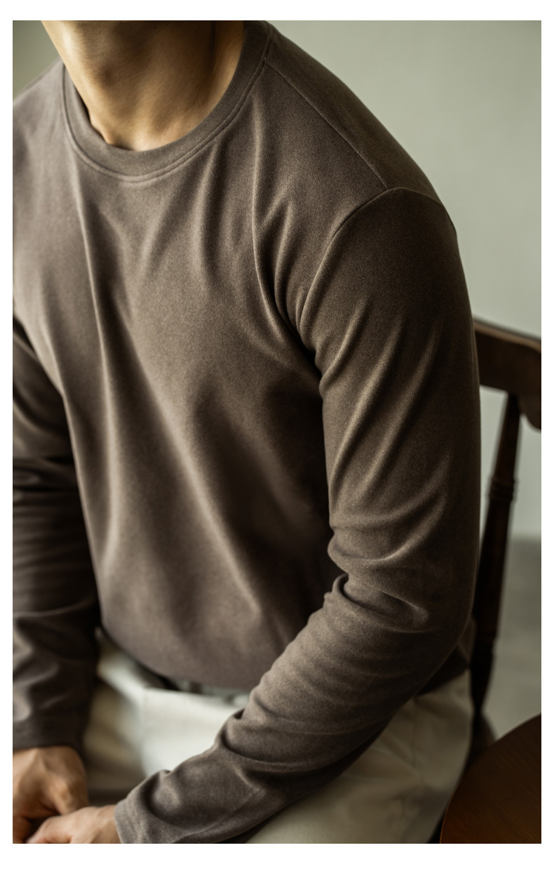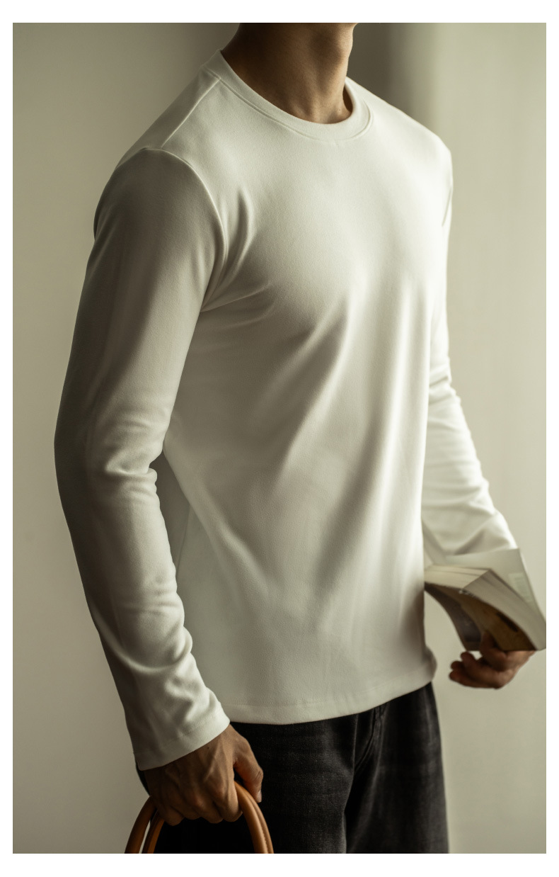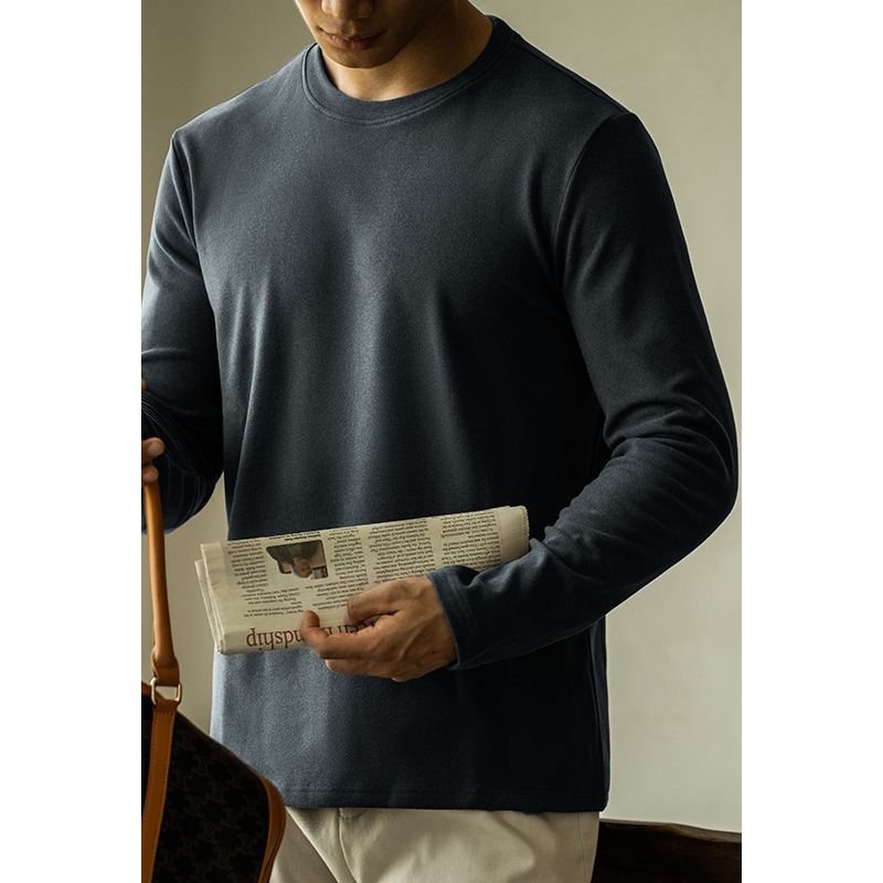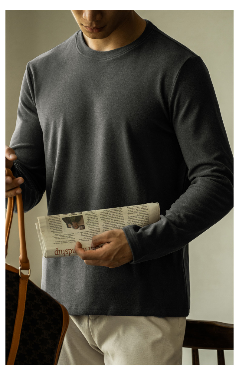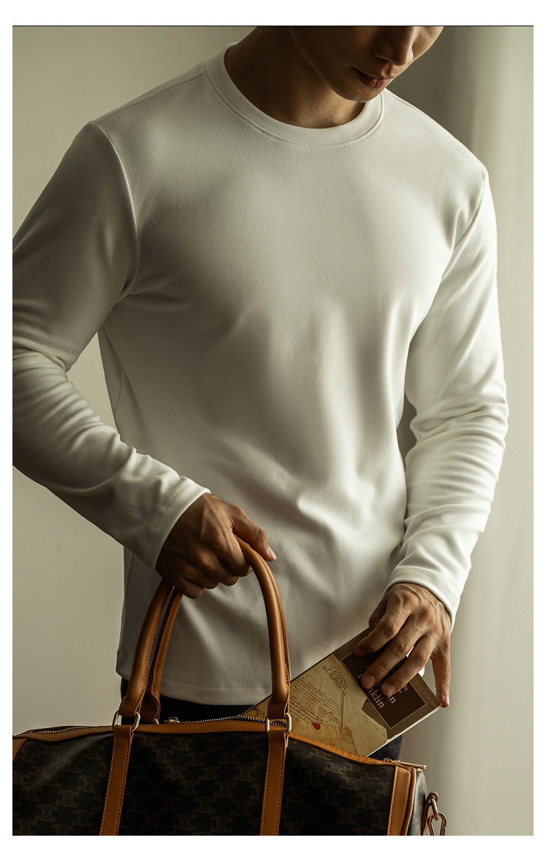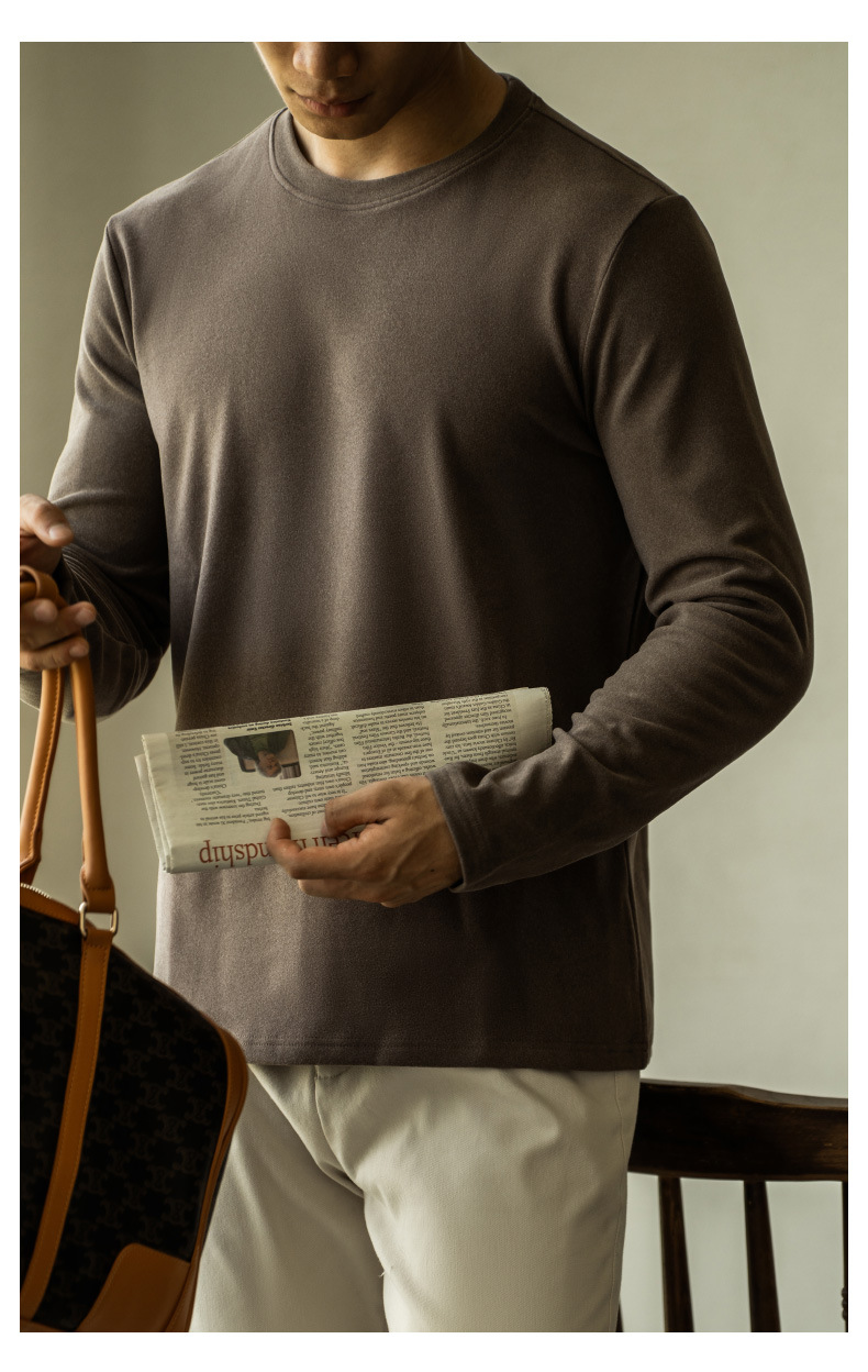 SONGNAN 따뜻한베이스 셔츠 남자의 가을과 겨울 슬림핏 심플 솔리드 컬러 양면 양털 라운드 넥 긴팔 티셔츠 탑