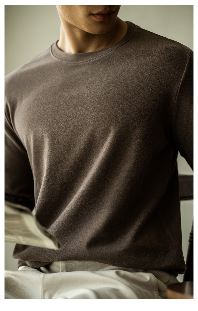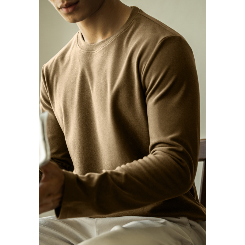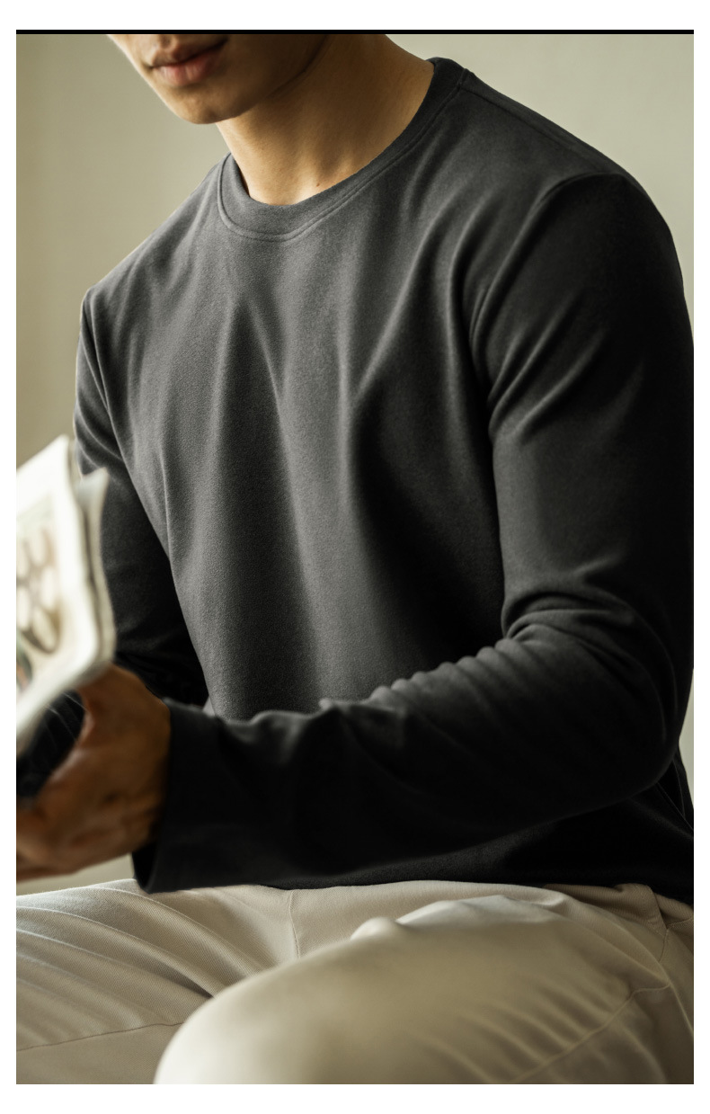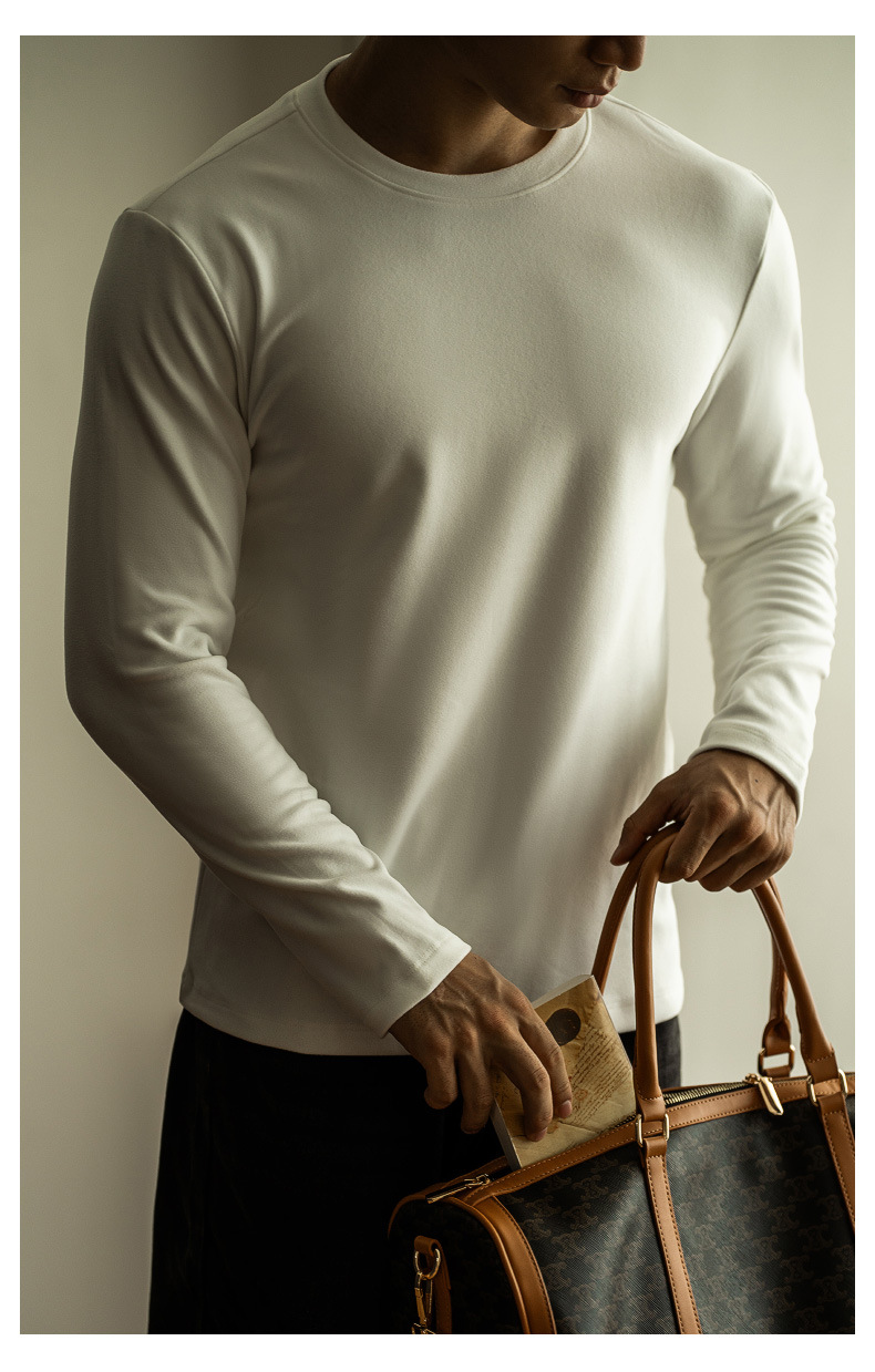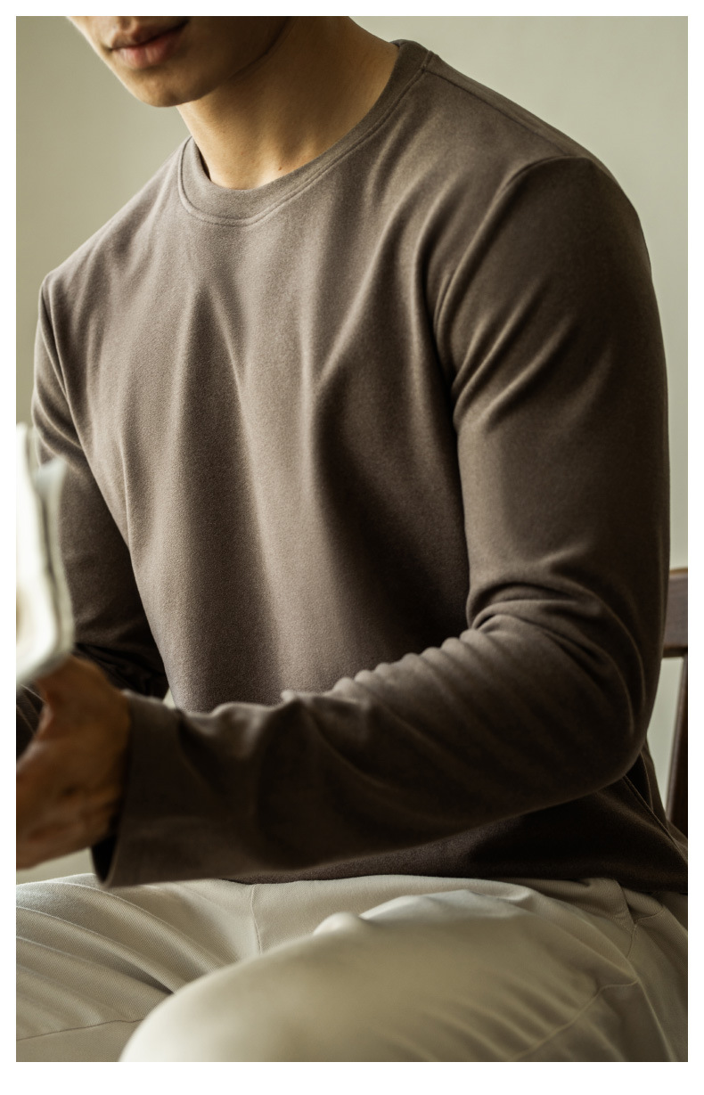 SONGNAN 따뜻한베이스 셔츠 남자의 가을과 겨울 슬림핏 심플 솔리드 컬러 양면 양털 라운드 넥 긴팔 티셔츠 탑