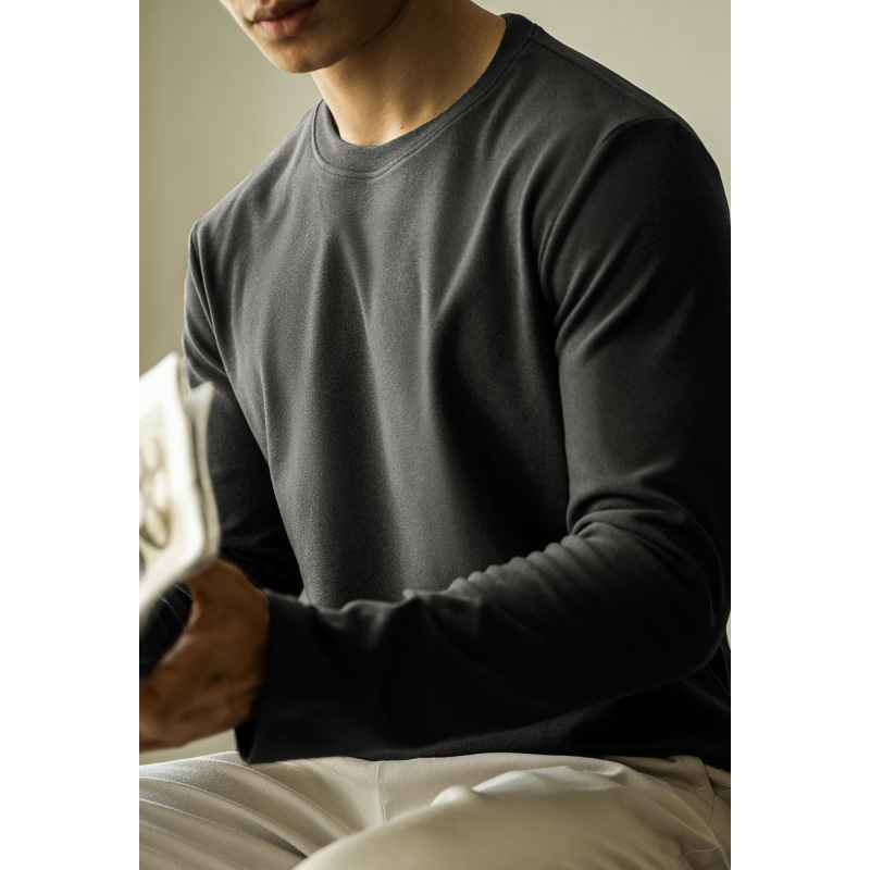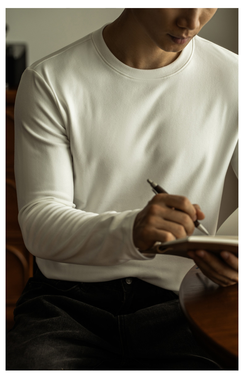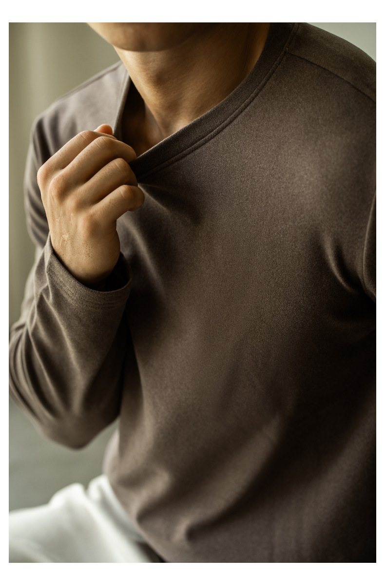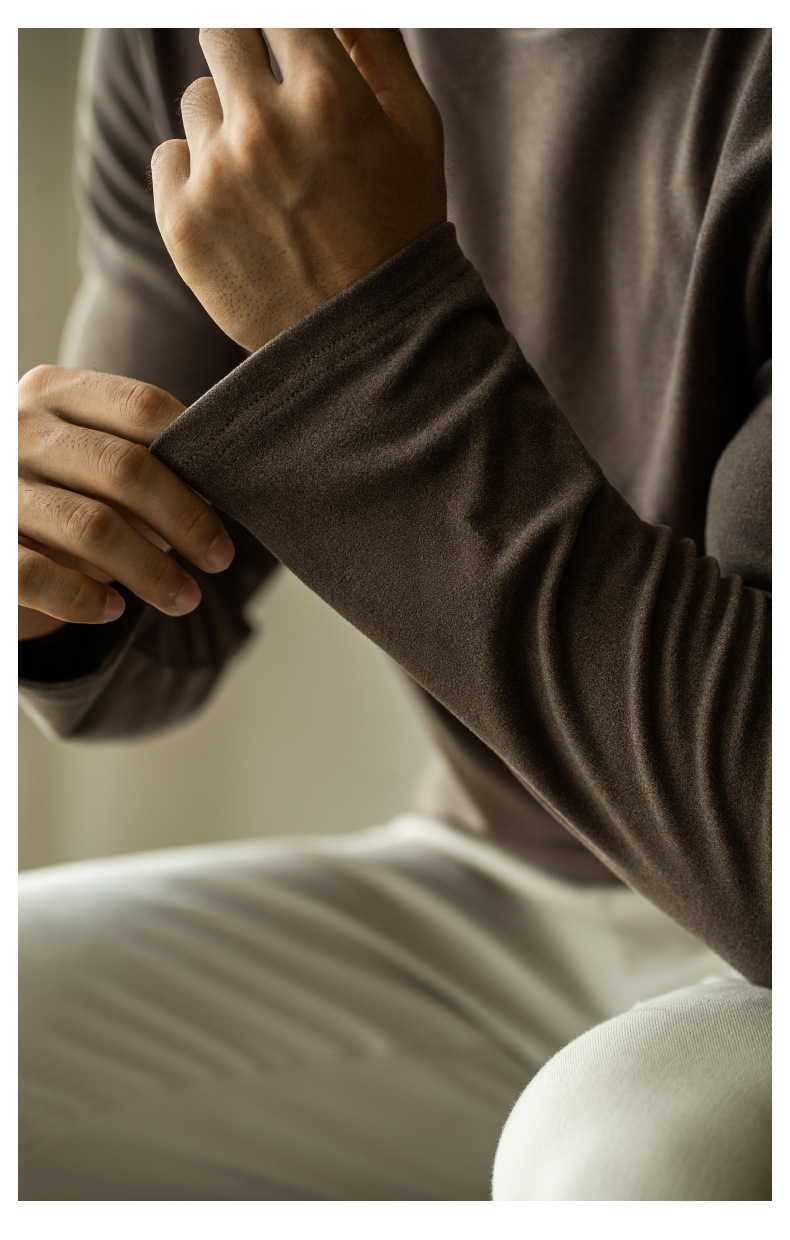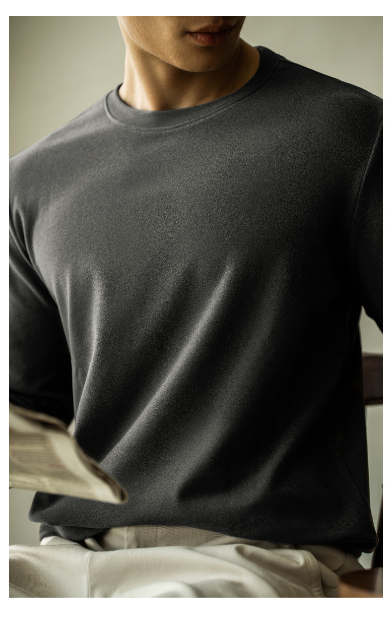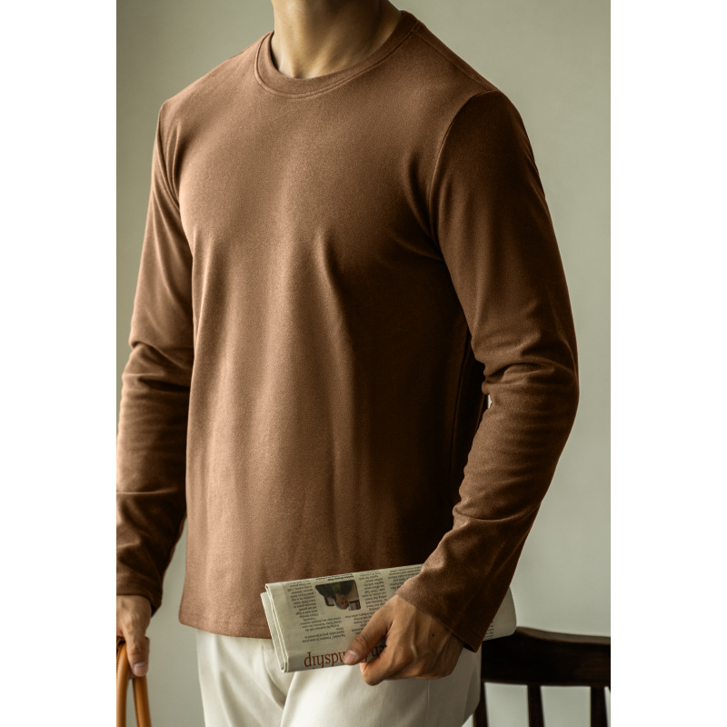 SONGNAN 따뜻한베이스 셔츠 남자의 가을과 겨울 슬림핏 심플 솔리드 컬러 양면 양털 라운드 넥 긴팔 티셔츠 탑