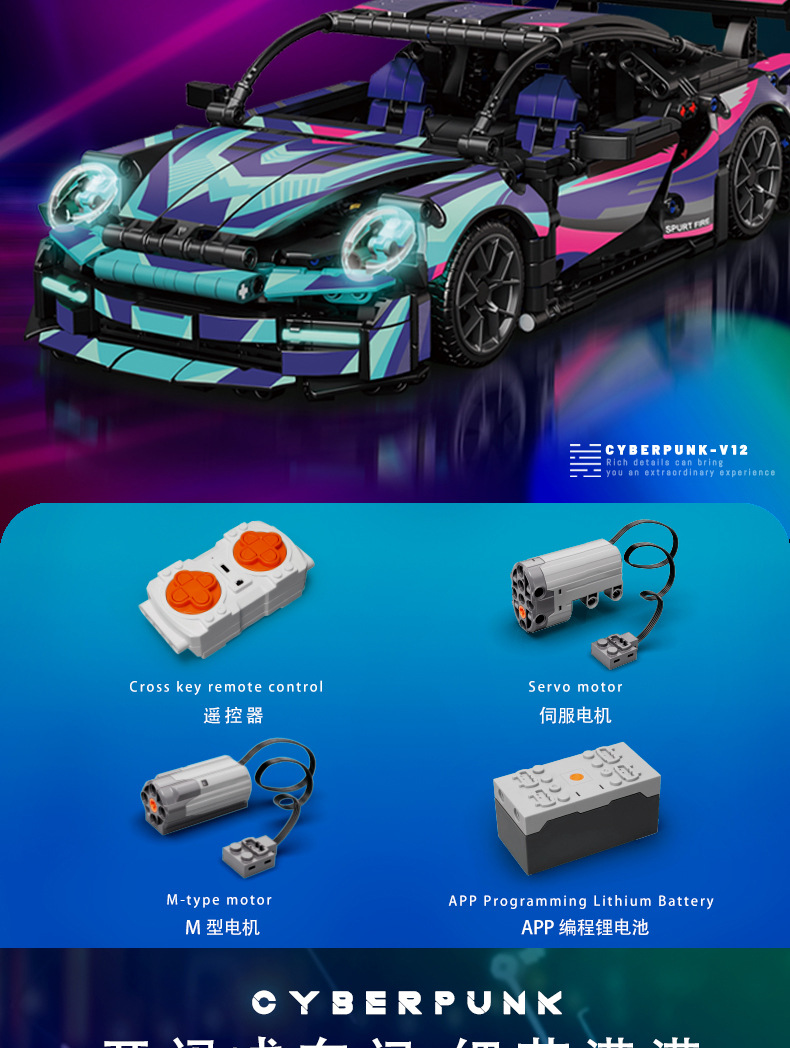 • 1:14 포르쉐 발광 버전 원격 제어 조명 [빌딩 블록 제외]