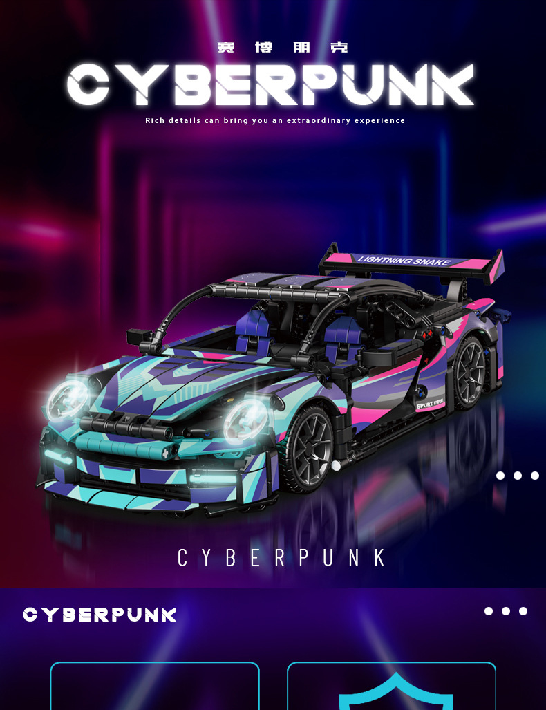 국경 간 빌딩 블록 1:14 Baoshi Jie RSR911 발광 버전 조립 빌딩 블록 럭셔리카 로고 모델 자동차 장난감 도매스토어 가기