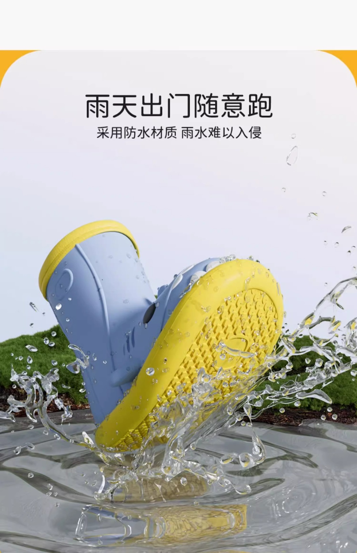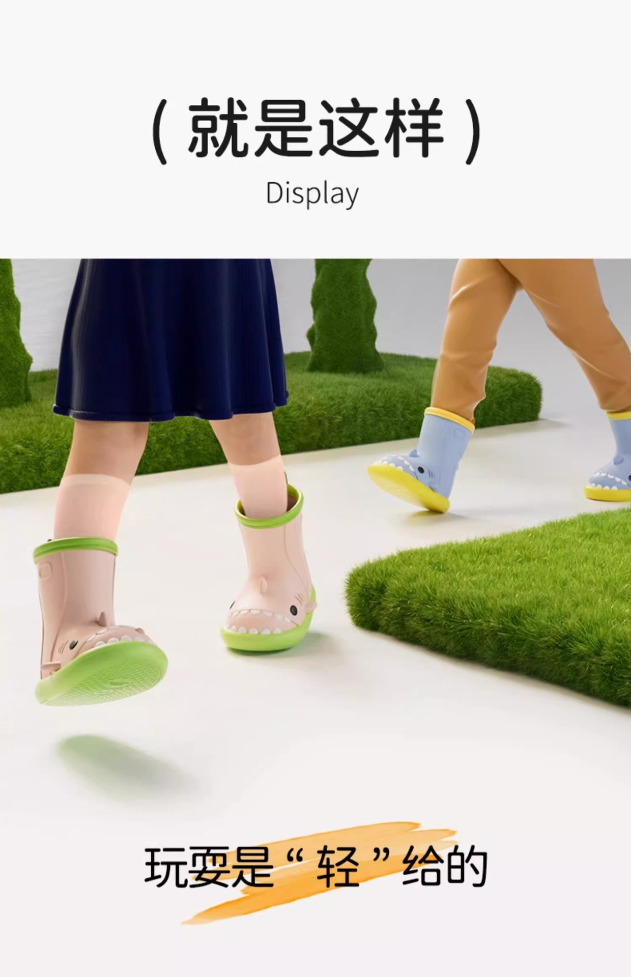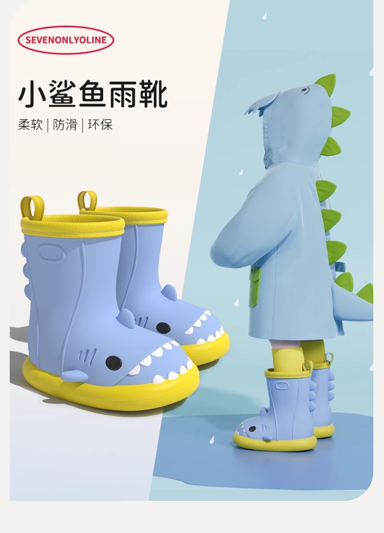 아기 상어 어린이 비 신발 소년과 소녀 방수 미끄럼 방지 아기 장화 유아 초등학교 어린이 유치원 물 신발