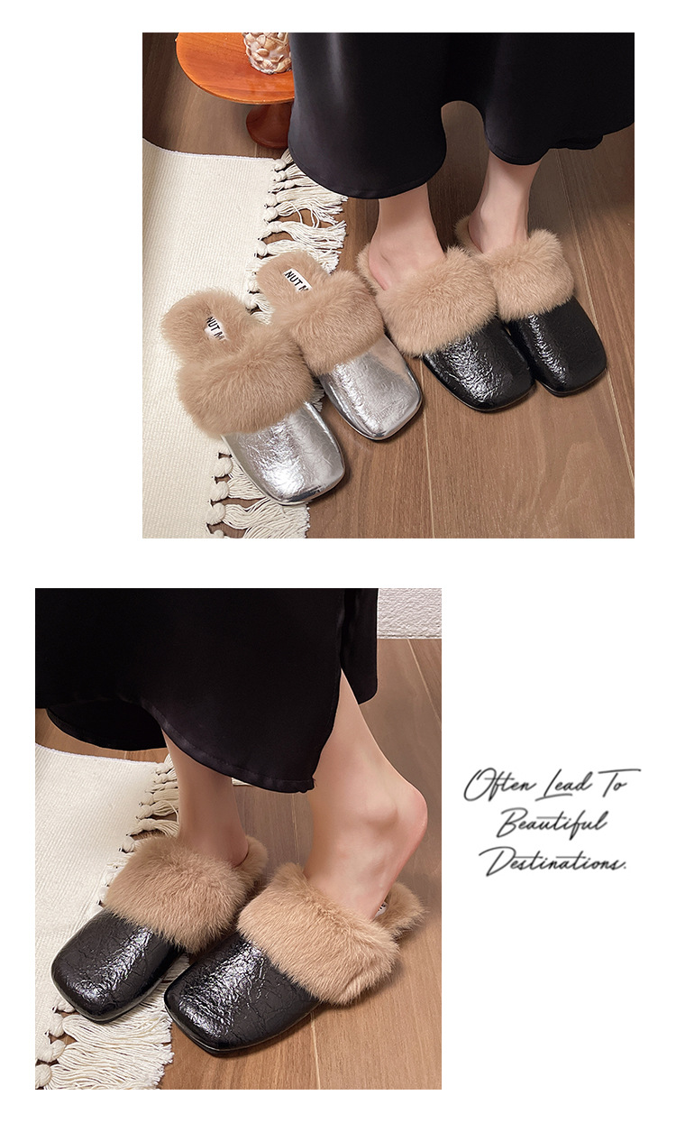 2024 년 가을과 겨울 새로운 낮은 발 뒤꿈치 광장 뒤꿈치 슬립 온 슬리퍼 여성용 캐주얼 바오터우 마오 슬리퍼 세련된 아웃웨어 여성 신발 트렌디