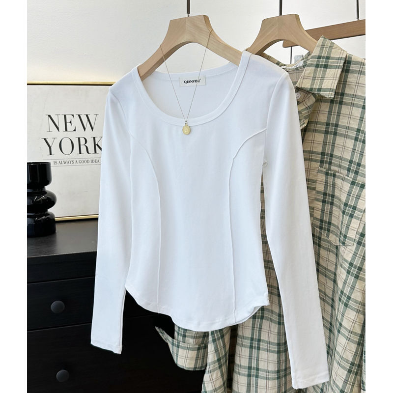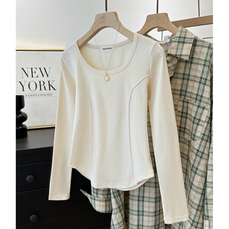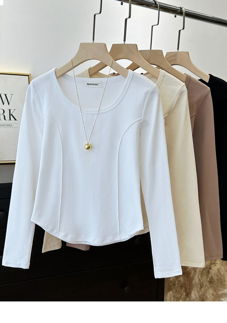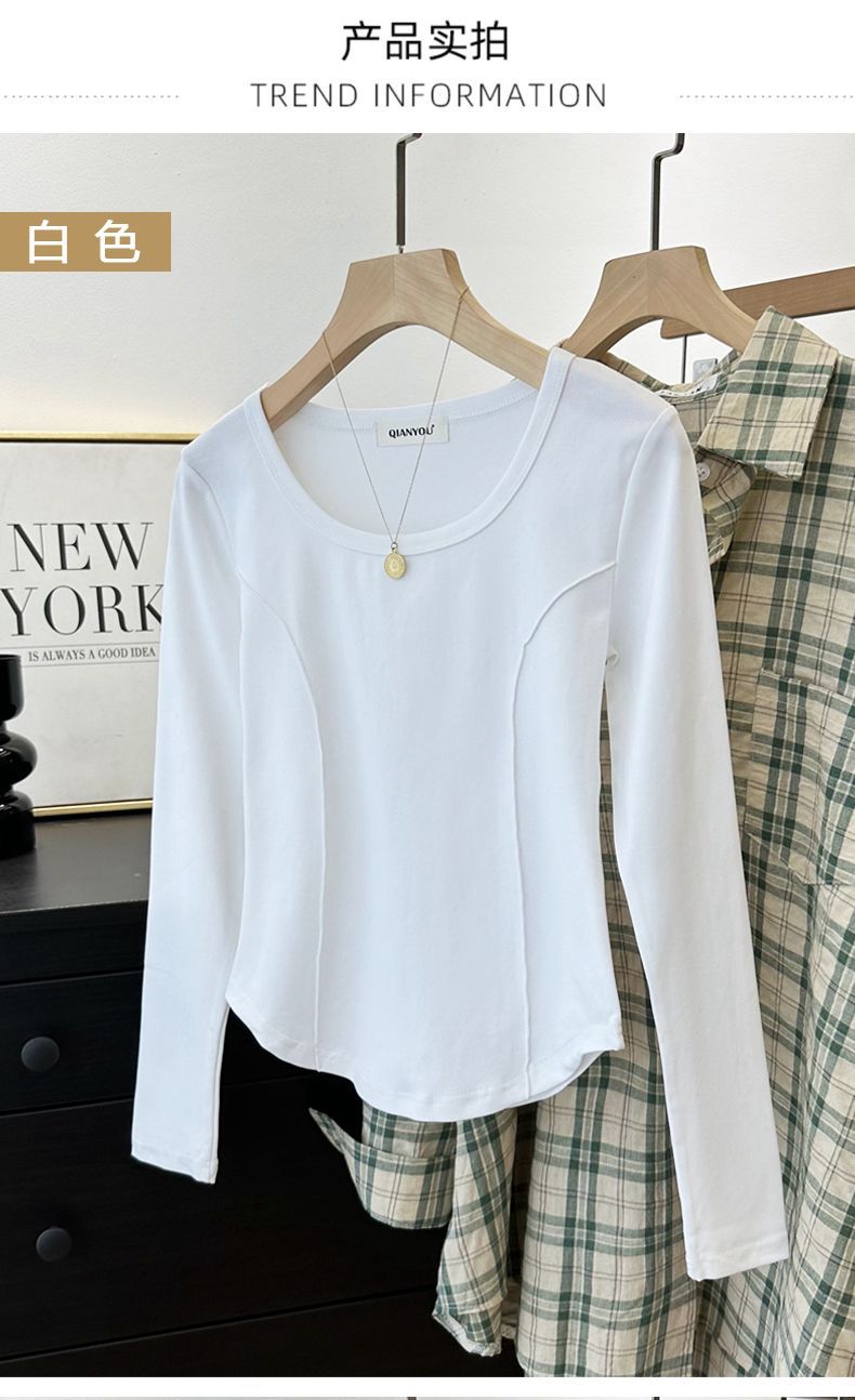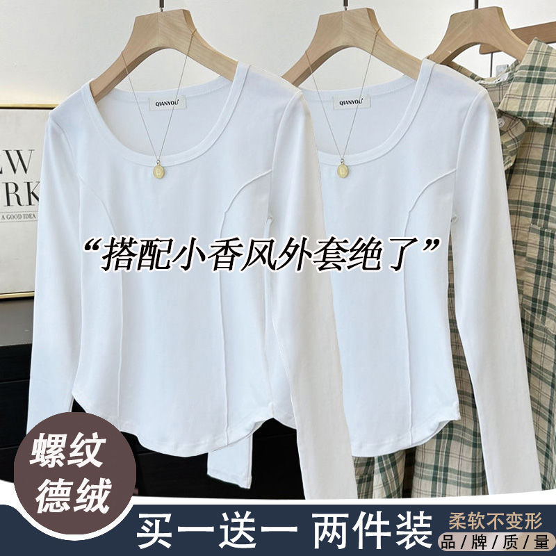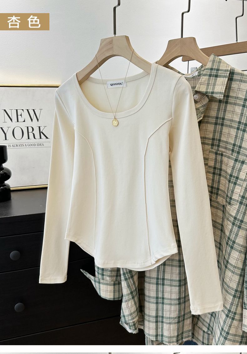 가을과 겨울 벨벳 긴팔 티셔츠 여성용 세련된 순수한 욕망 따뜻한 내부 광장 목걸이 생선 뼈 타이트베이스 셔츠 슬림 핏스토어 가기