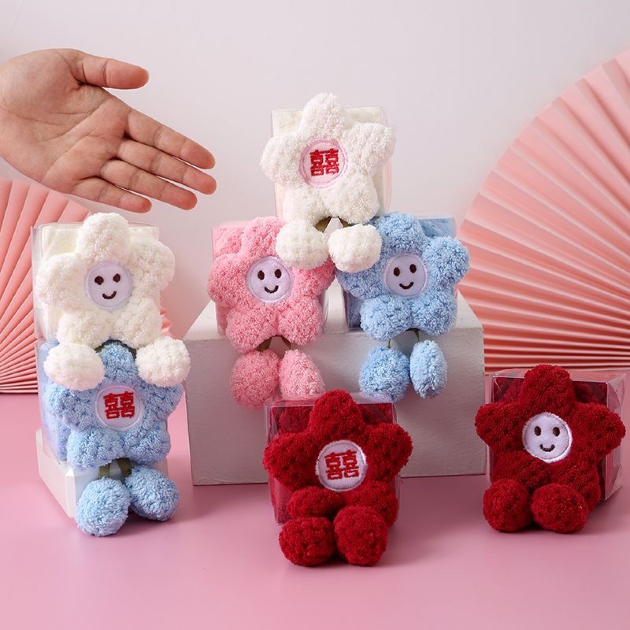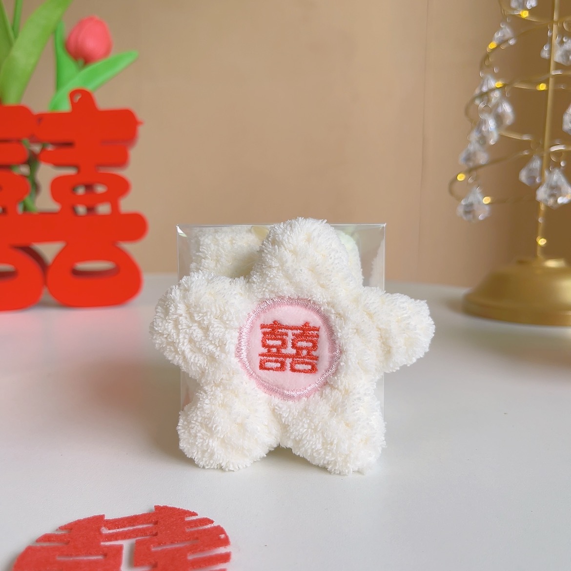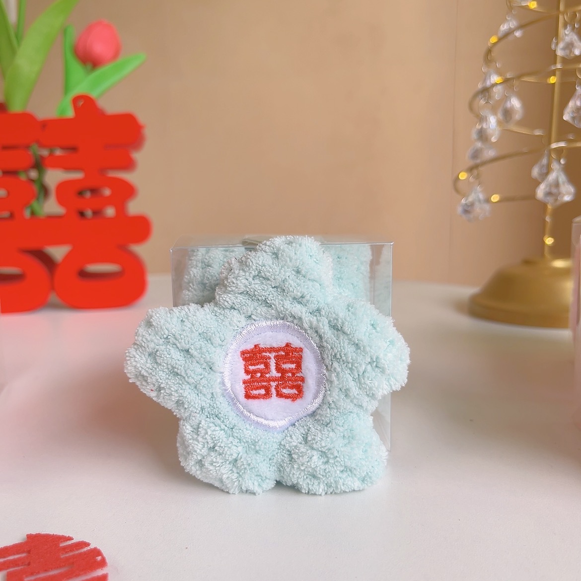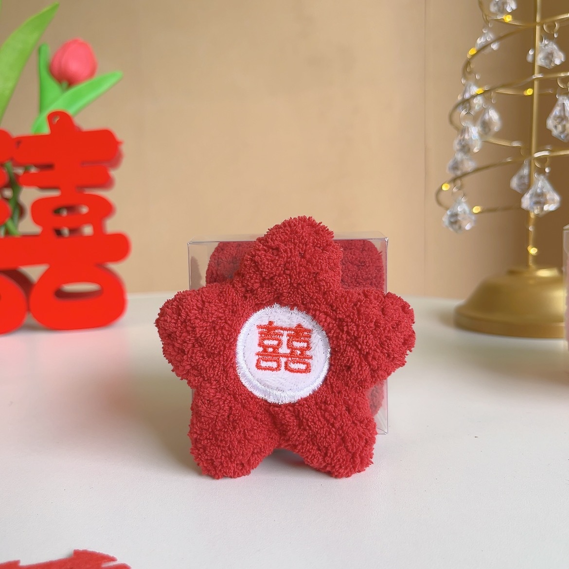 작은 붉은 꽃 선물 상자 홈 웨딩 웨딩 스퀘어 스퀘어 코랄 신부 들러리 선물 하이 엔드 웨딩 플라워 타월