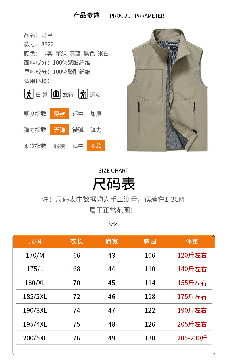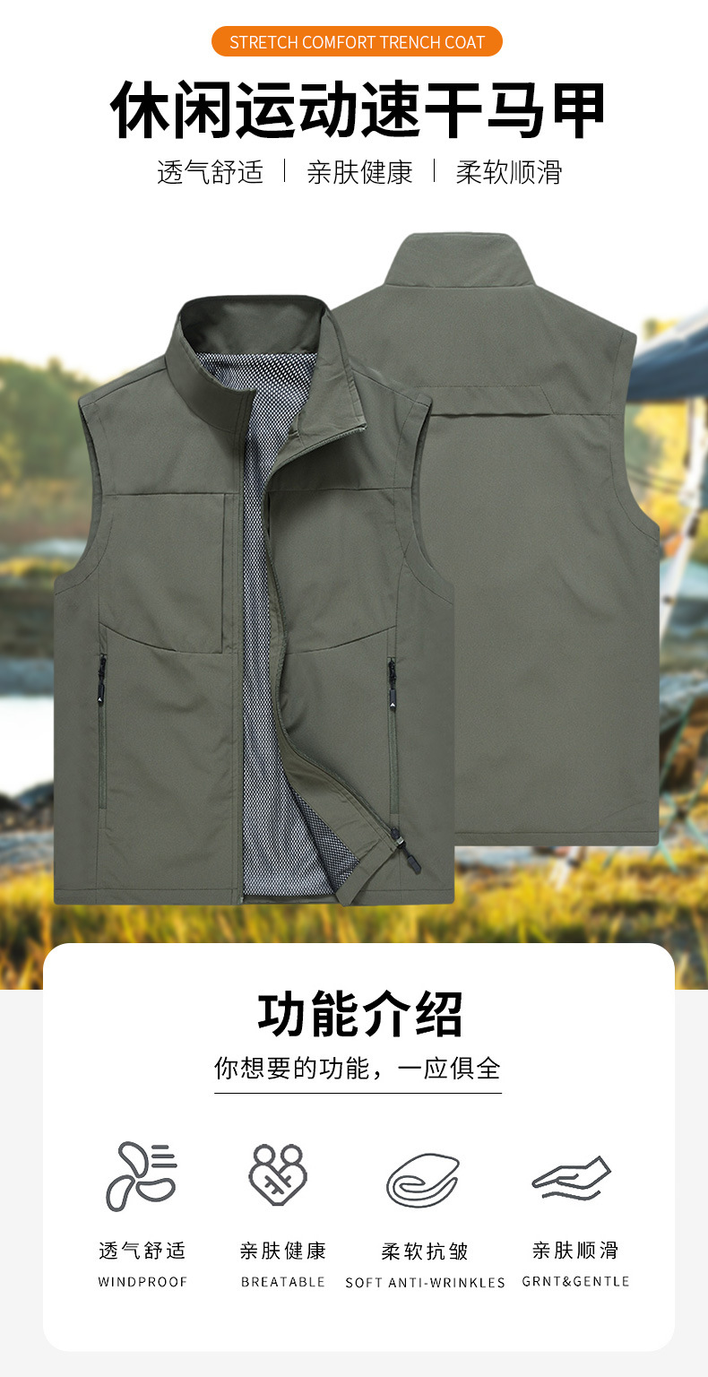 봄과 가을 남성 조끼 캐주얼 빠른 건조 수직 칼라 조끼 중년 및 노인 야외 멀티 포켓 조끼 남성용 어깨 조끼스토어 가기