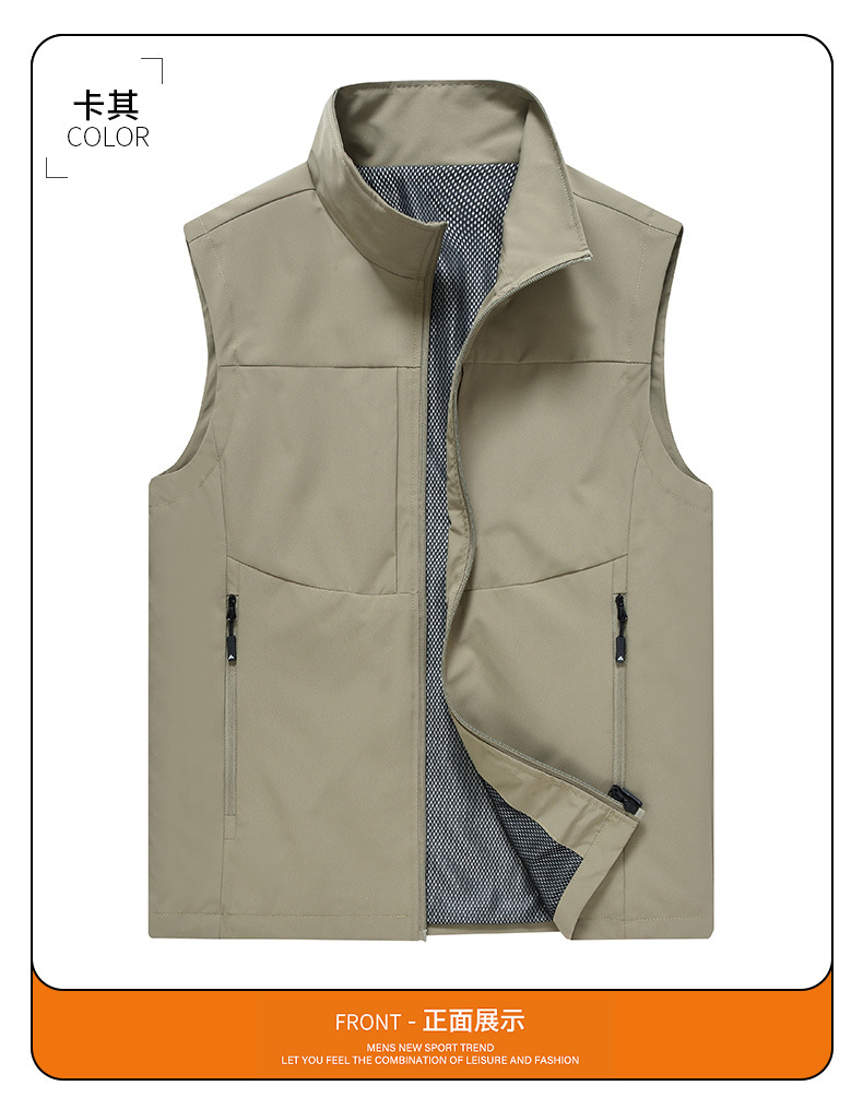 봄과 가을 남성 조끼 캐주얼 빠른 건조 수직 칼라 조끼 중년 및 노인 야외 멀티 포켓 조끼 남성용 어깨 조끼