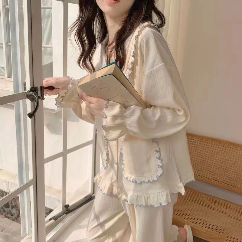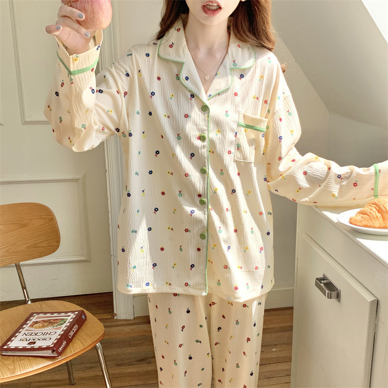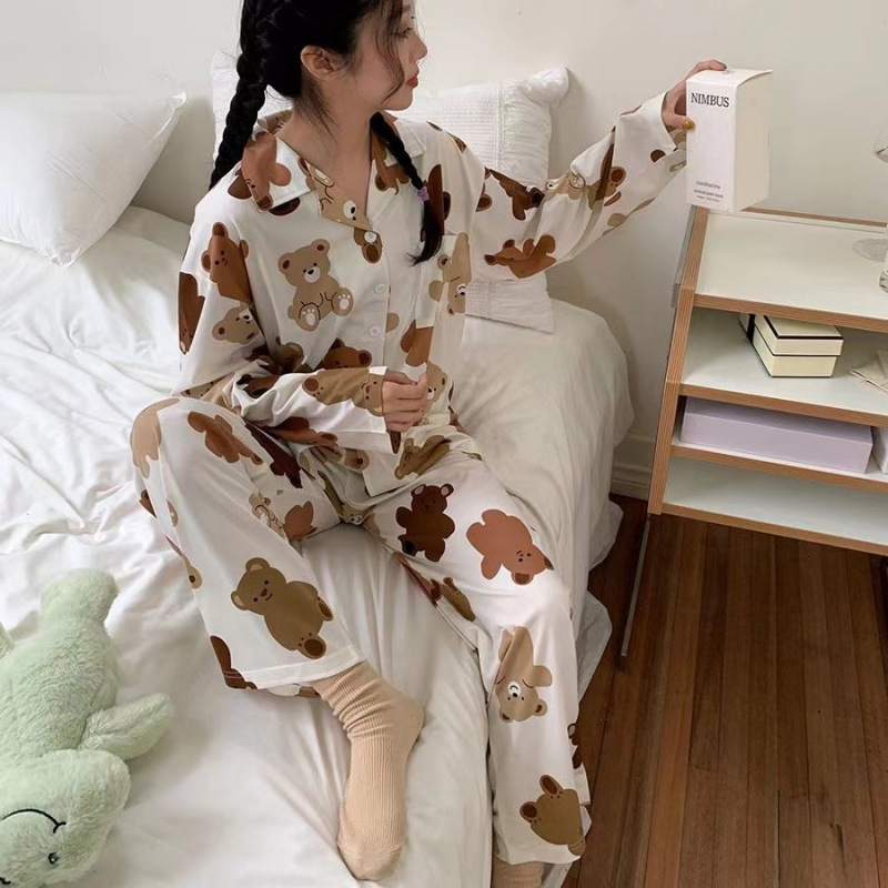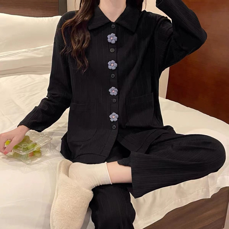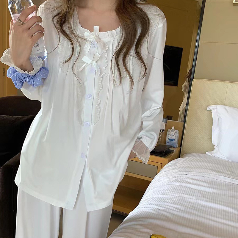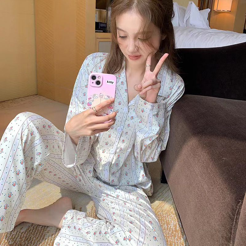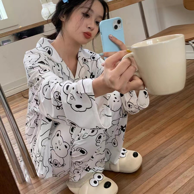 간단한 나비 긴 소매 잠옷 여성의 캐주얼 봄 가을과 여름 2023 새로운 검은 집 옷 바지 세트 입을 수 있습니다스토어 가기