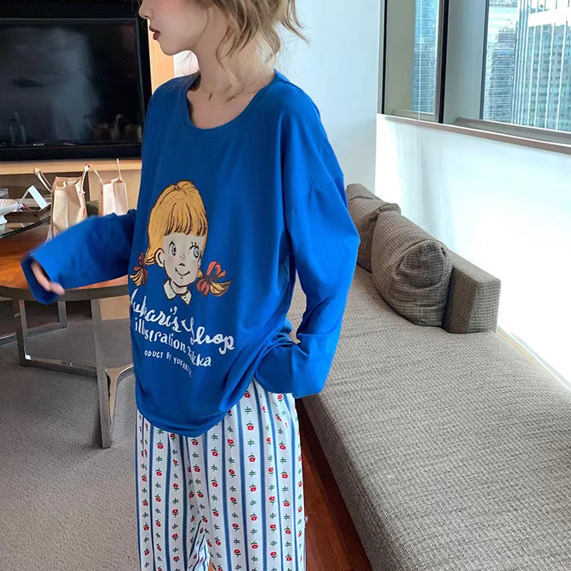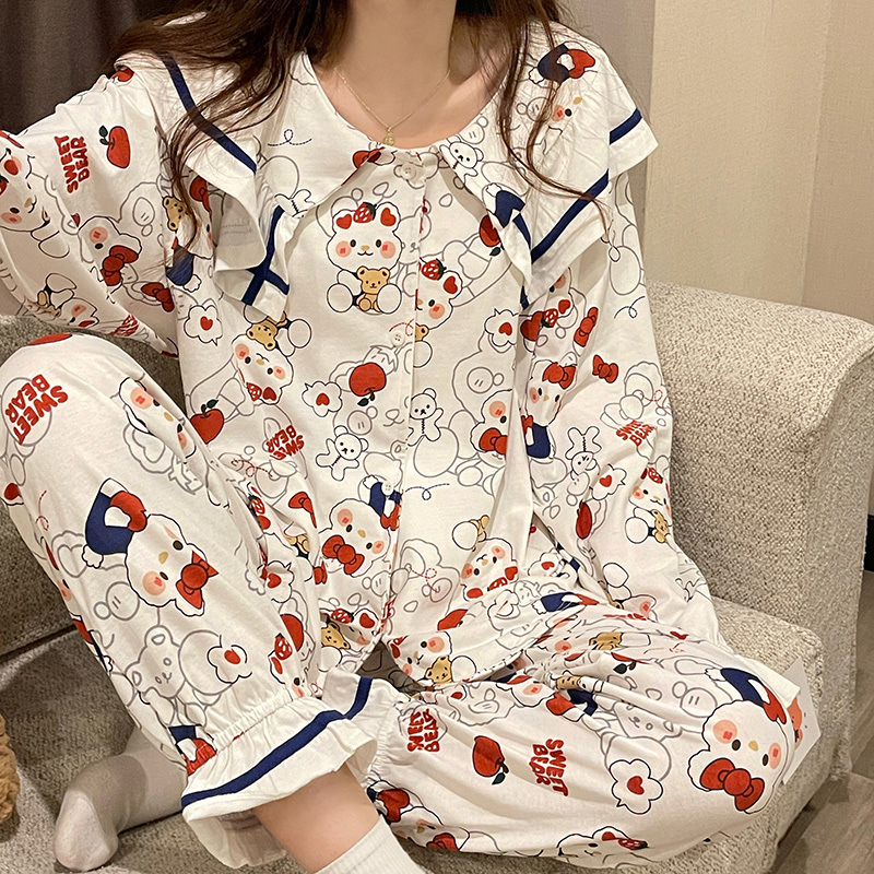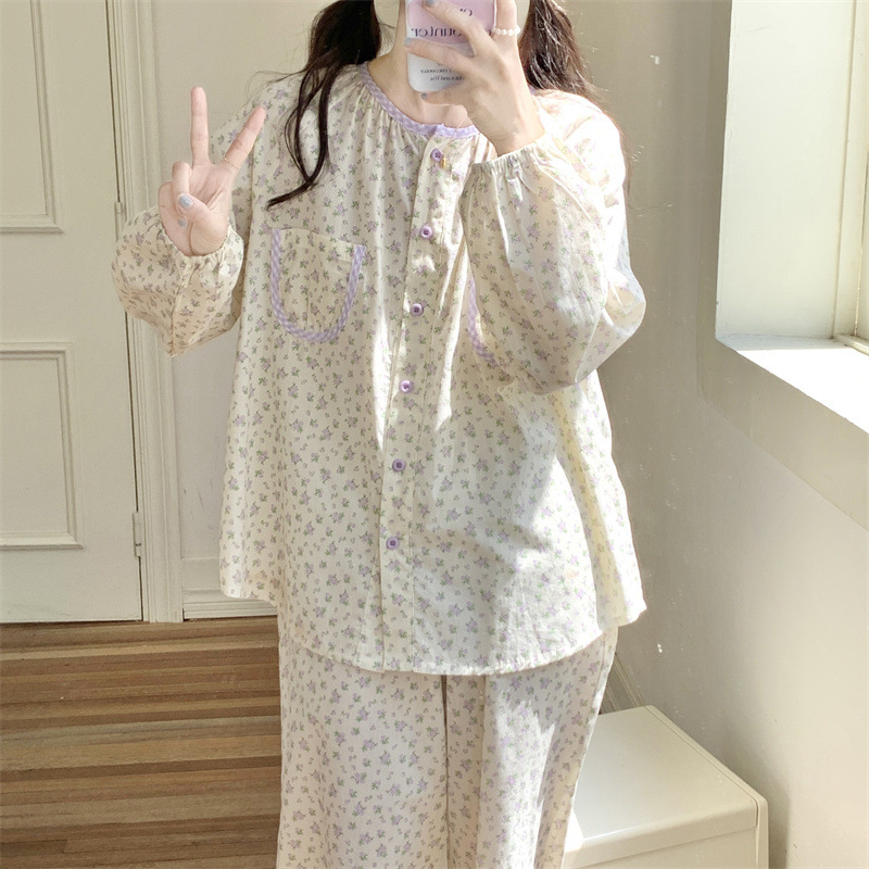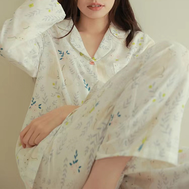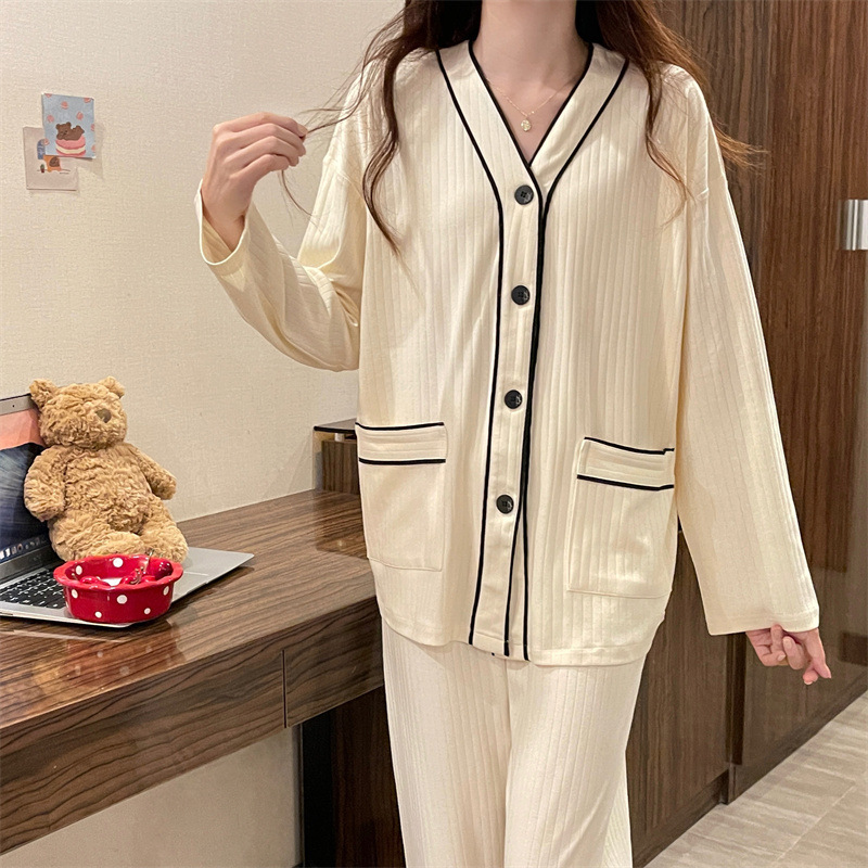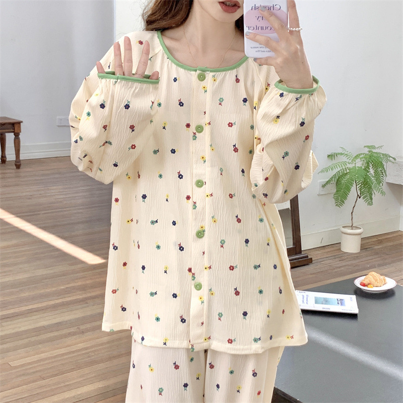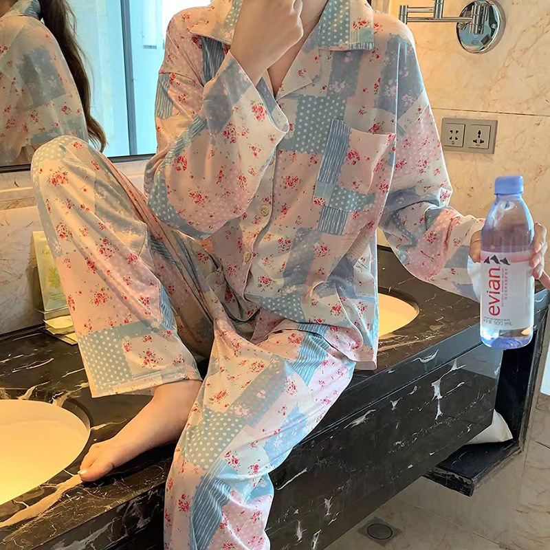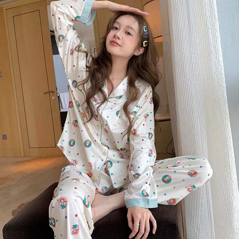 간단한 나비 긴 소매 잠옷 여성의 캐주얼 봄 가을과 여름 2023 새로운 검은 집 옷 바지 세트 입을 수 있습니다스토어 가기
