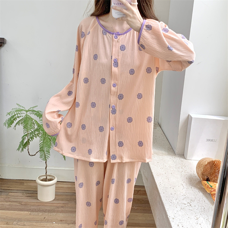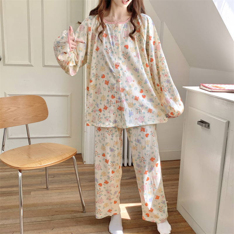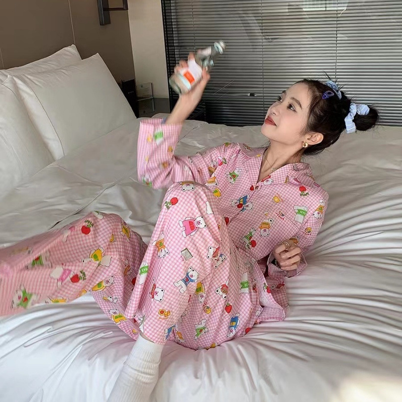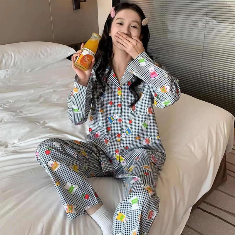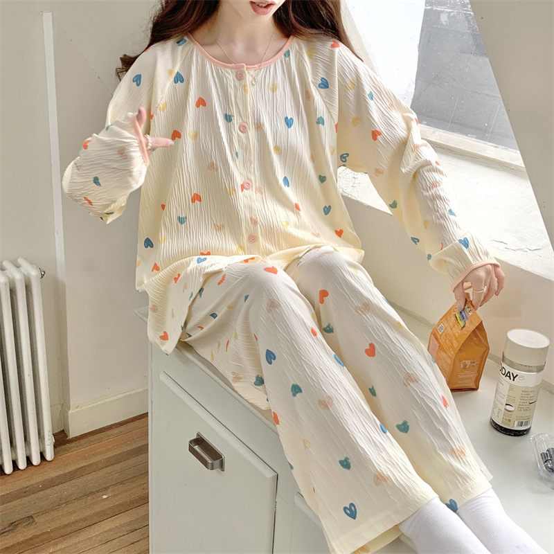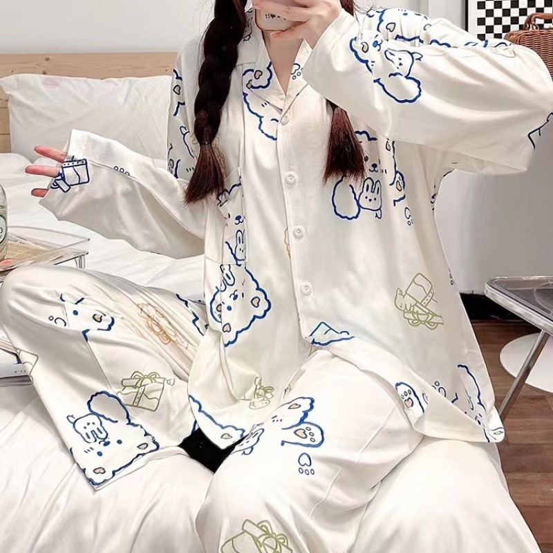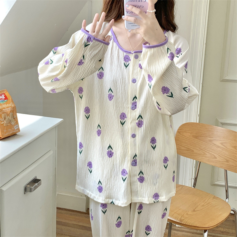 간단한 나비 긴 소매 잠옷 여성의 캐주얼 봄 가을과 여름 2023 새로운 검은 집 옷 바지 세트 입을 수 있습니다스토어 가기