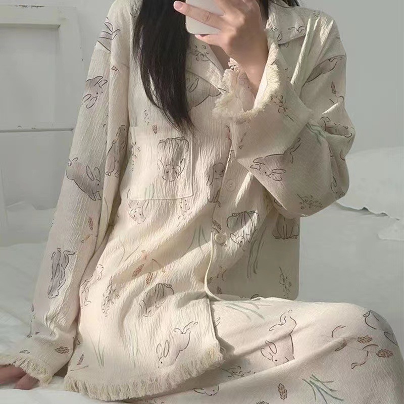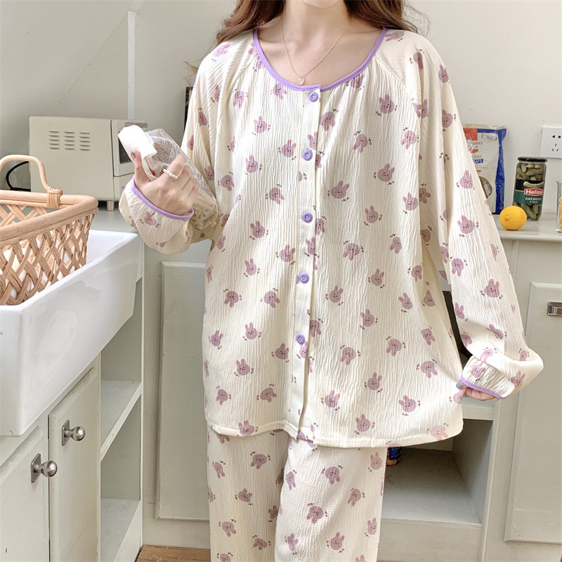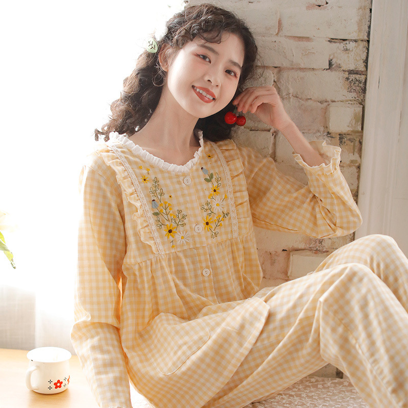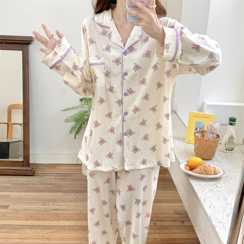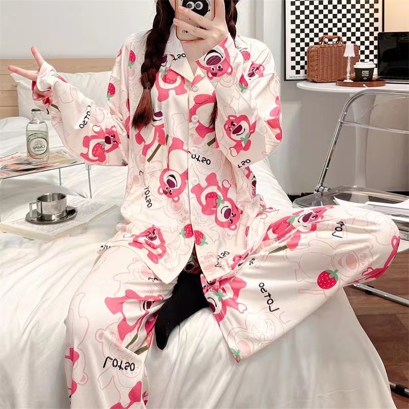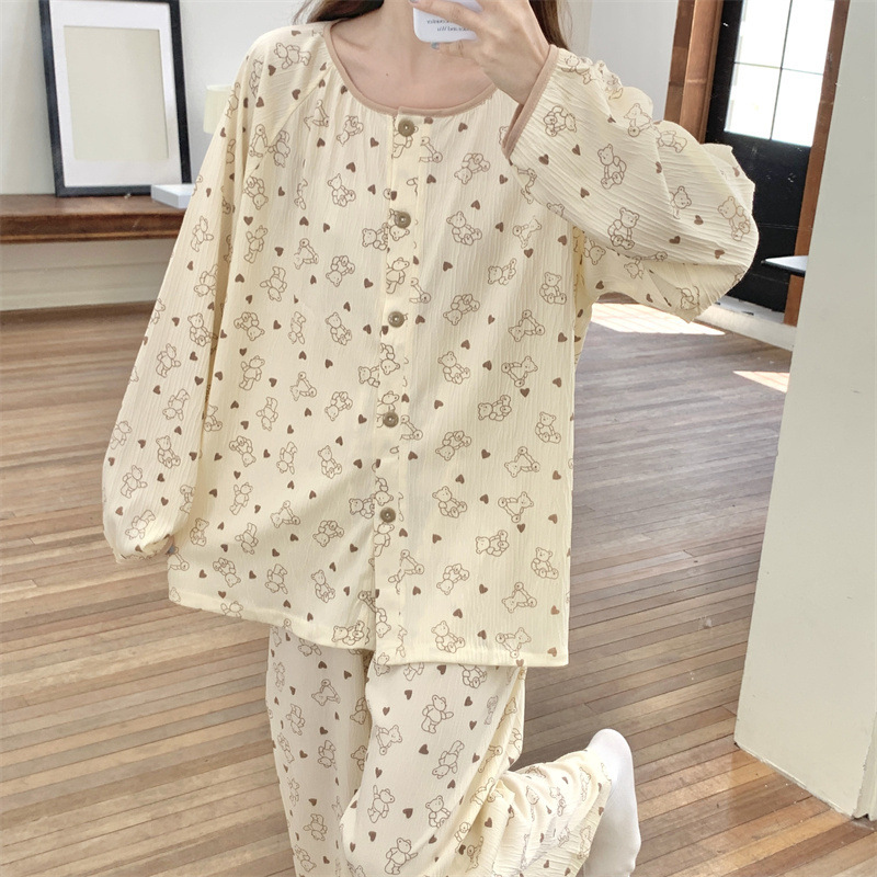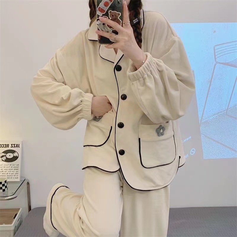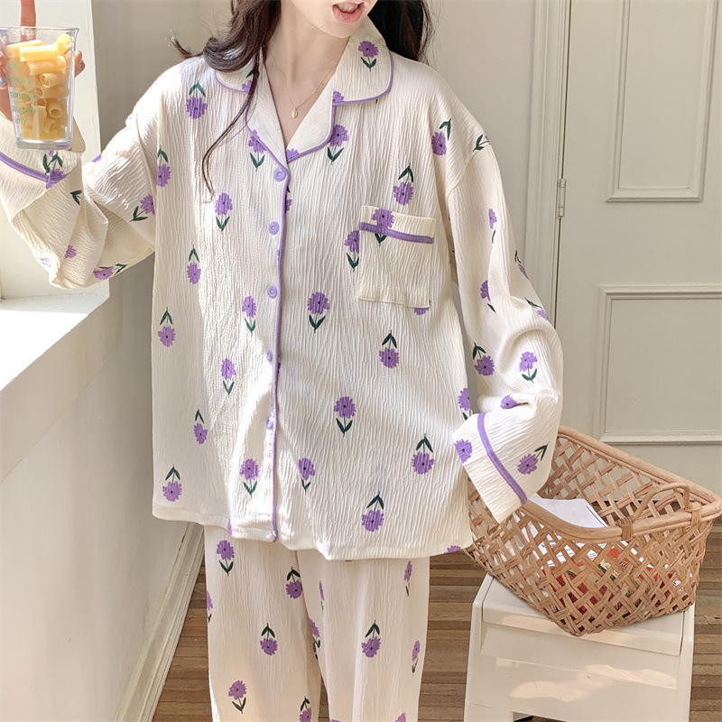 간단한 나비 긴 소매 잠옷 여성의 캐주얼 봄 가을과 여름 2023 새로운 검은 집 옷 바지 세트 입을 수 있습니다스토어 가기