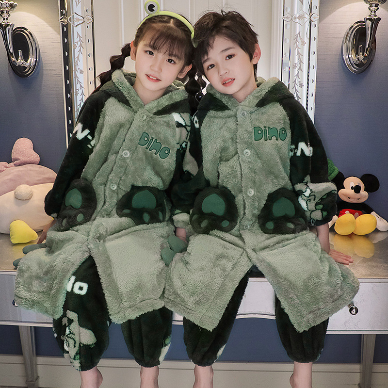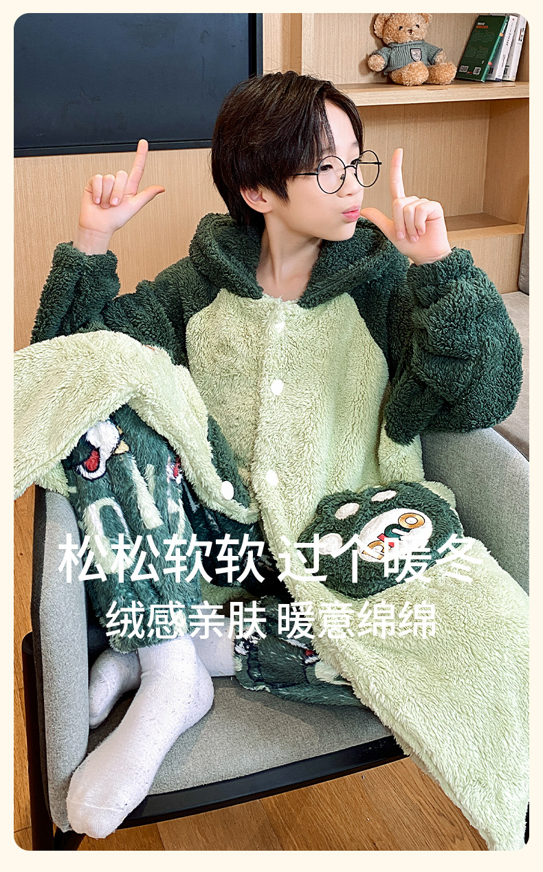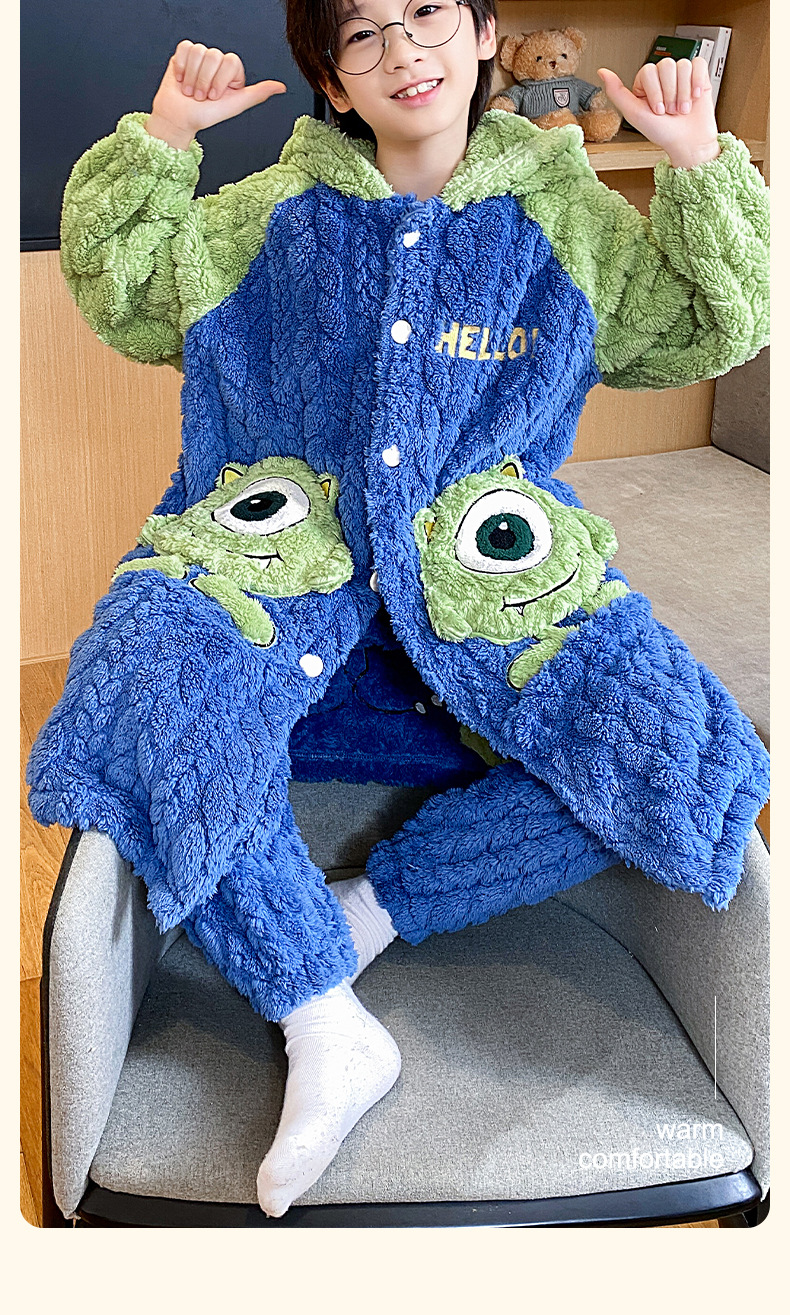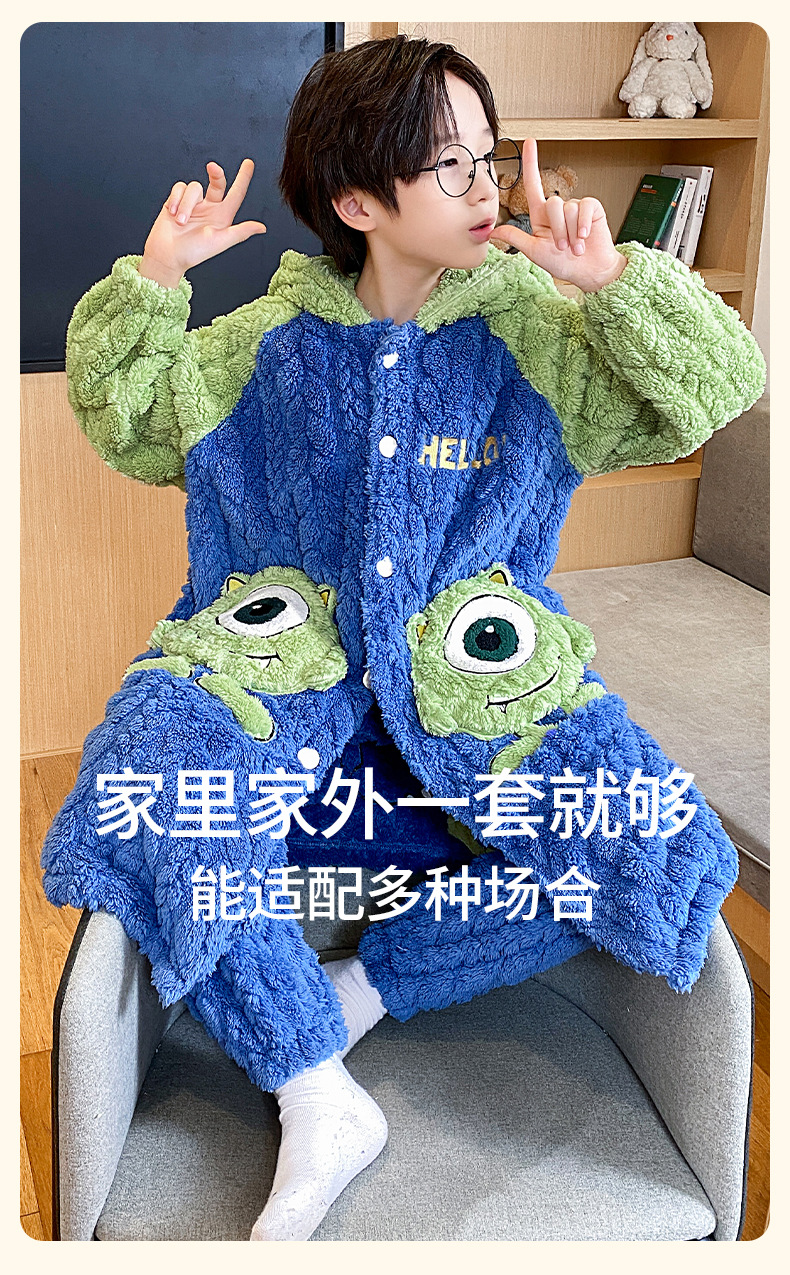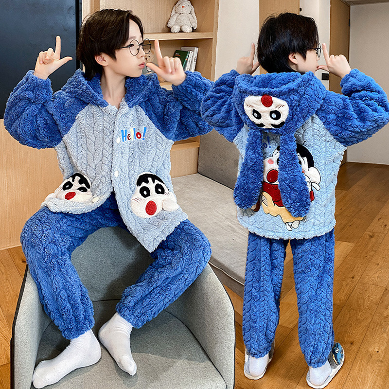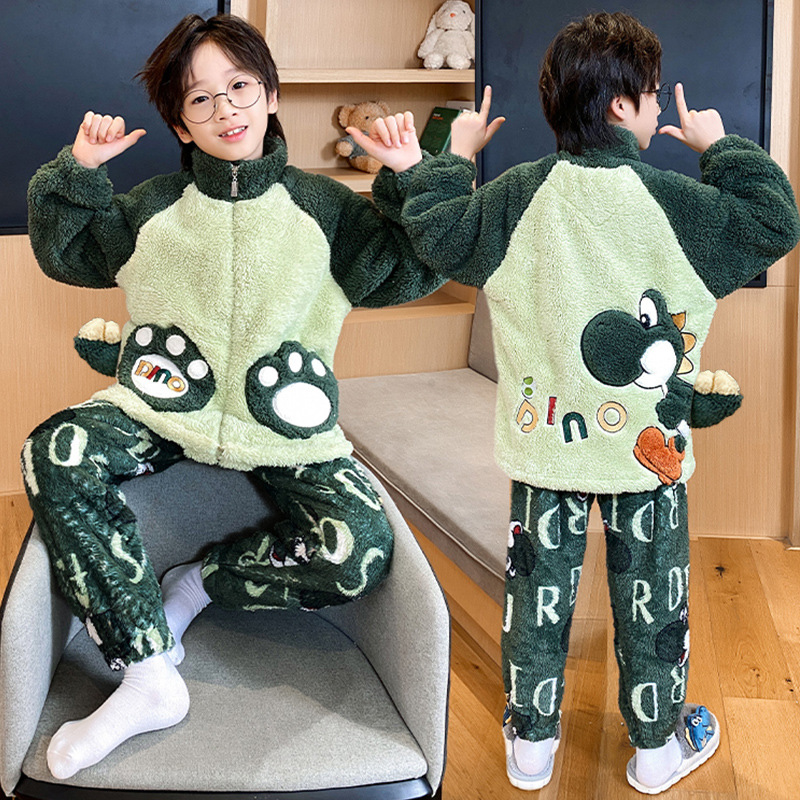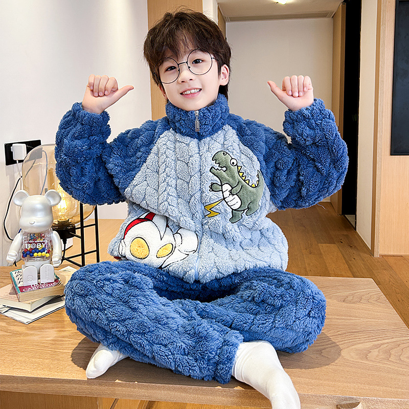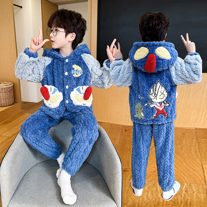 어린이 잠옷 소년 새로운 겨울 두꺼운 산호 양털 소년 만화 홈 옷 남자를위한 겨울 세트